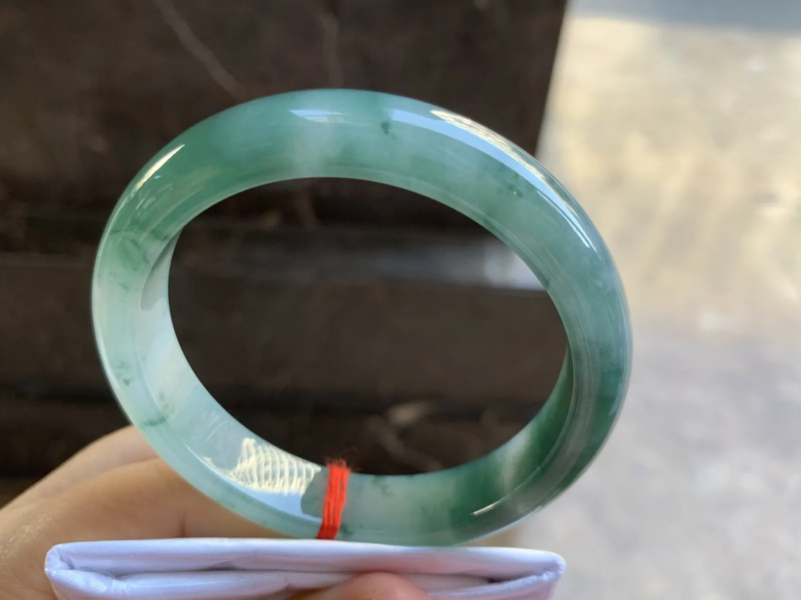 n自然光54*8.5*8.7叮当镯 缅甸翡翠a货玉手镯淡雅圆条玉手环