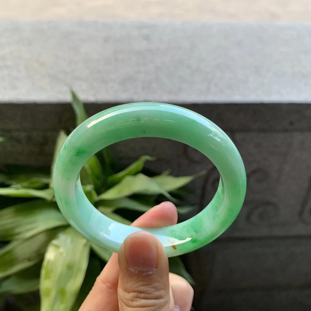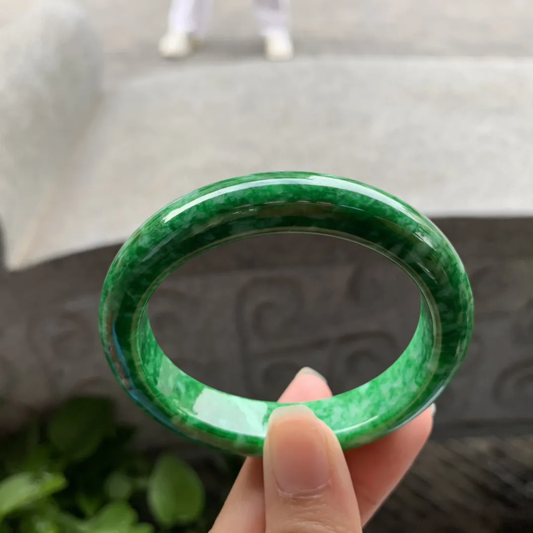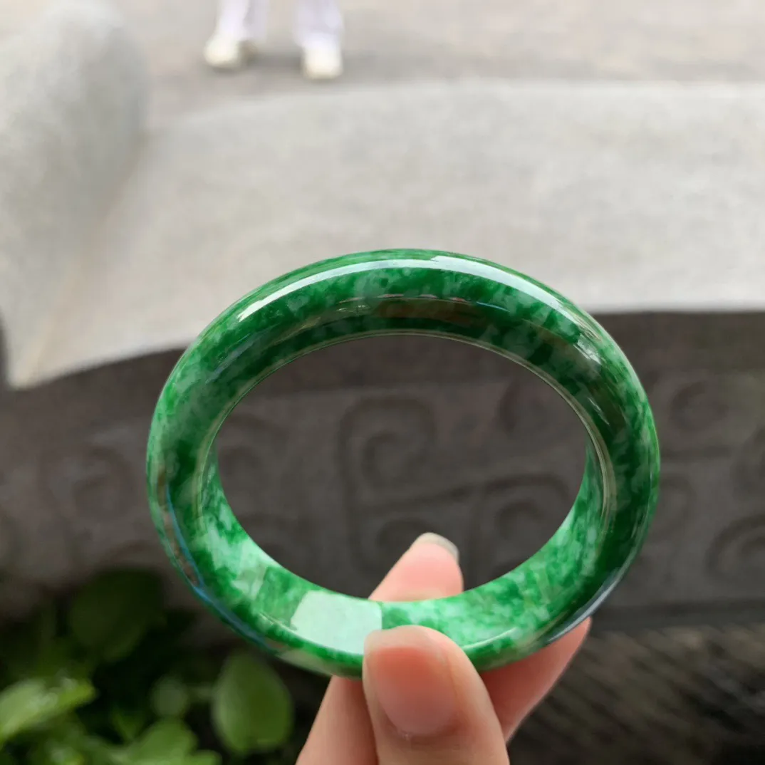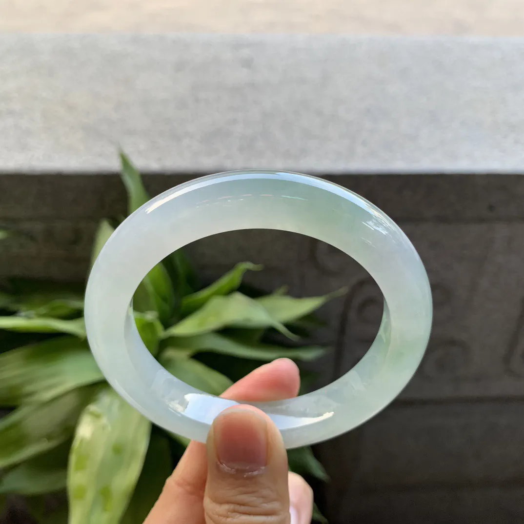 【翡翠名称】老种冰飘花55.8正圈口翡翠手镯 【翡翠尺寸】55.8*13.5*7.8mm适合正圈口佩