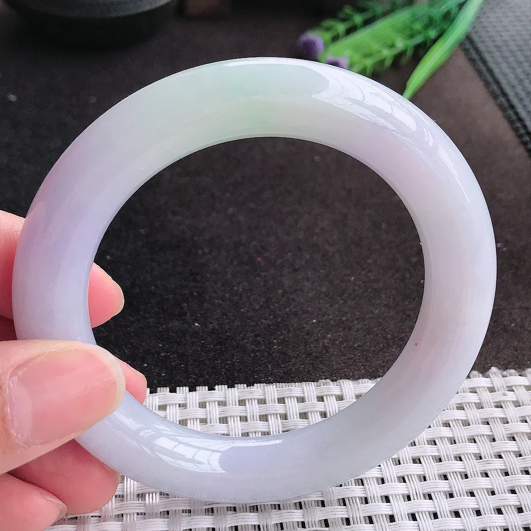 天然A货翡翠57.5/11.5/12老坑秀气冰润浅紫罗兰圆条手镯玉镯