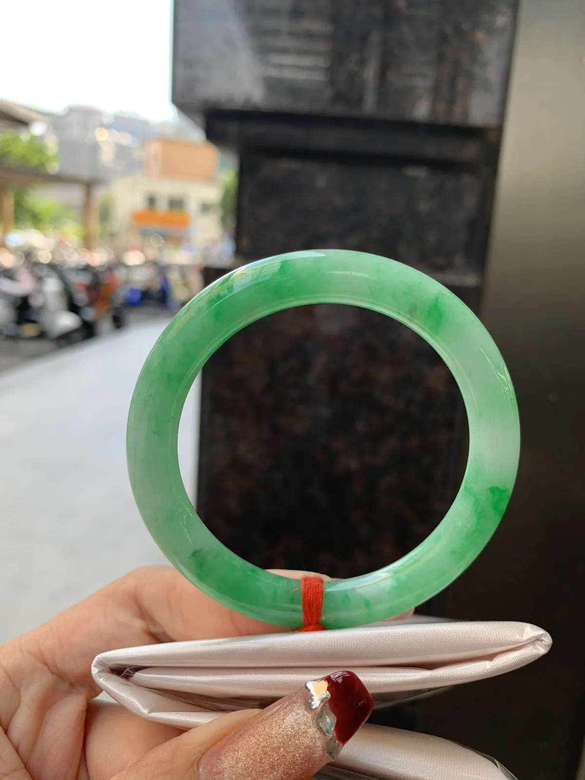 自然光拍摄天然翡翠A货好种水54mm正圈手镯 45.64克