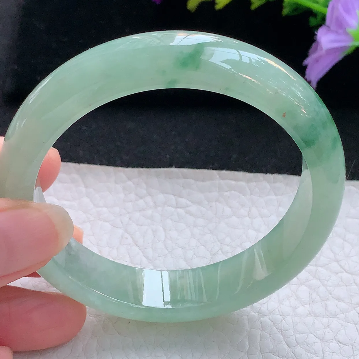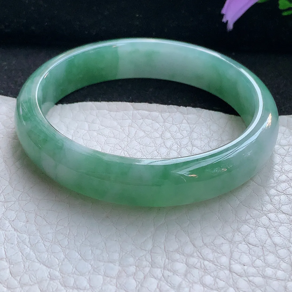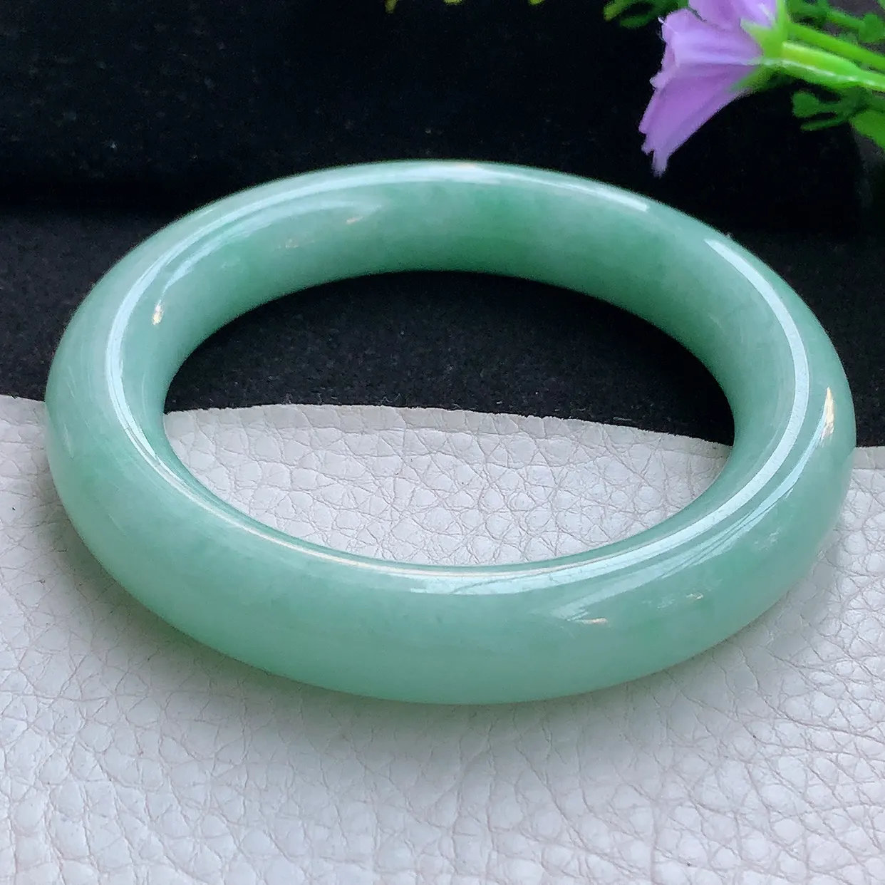 xh实拍57*13.8*7.8平安镯 天然翡翠A货手镯冰透正圈宽边玉镯