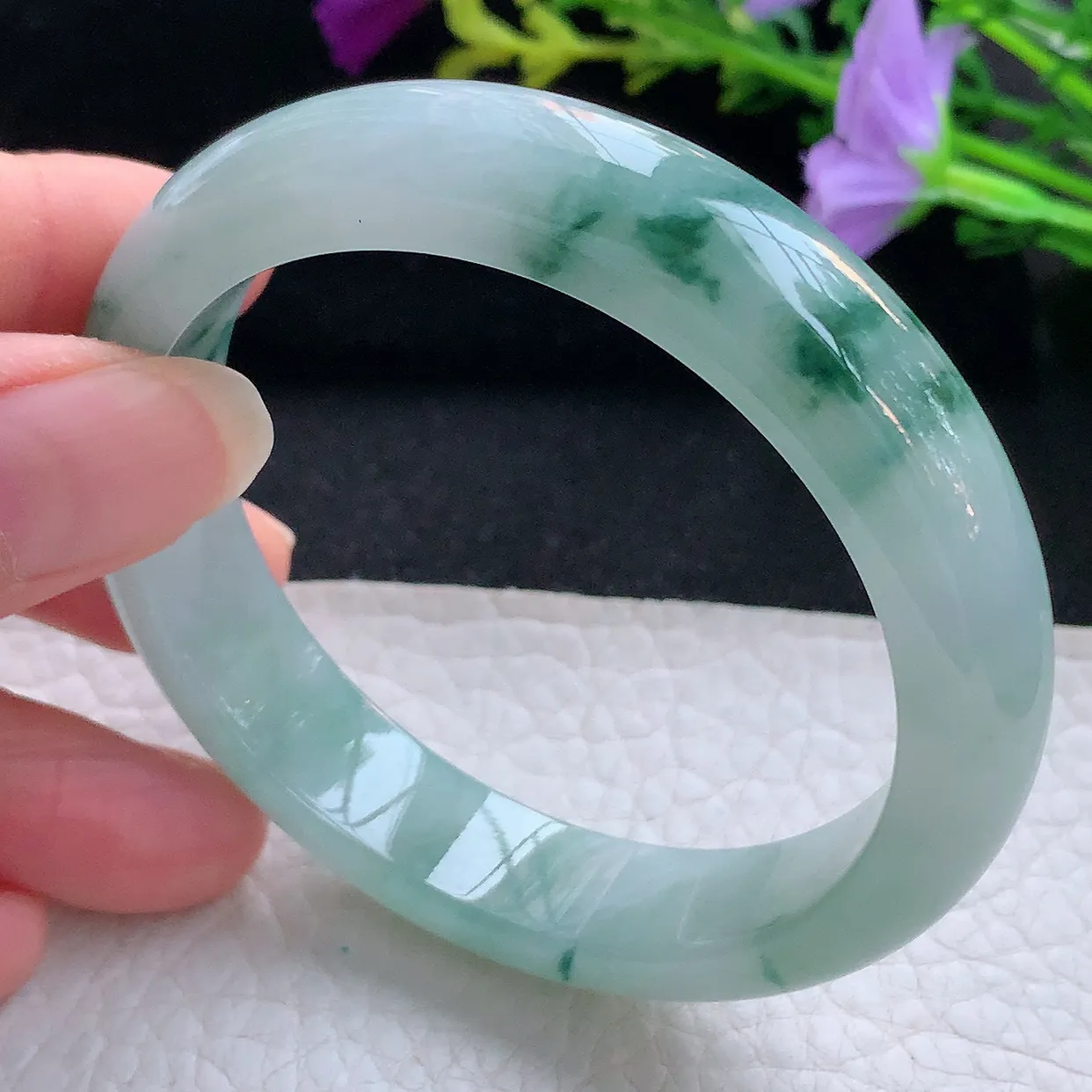 xh实拍55*12.2*8平安镯 天然缅甸翡翠手镯冰飘花玉镯