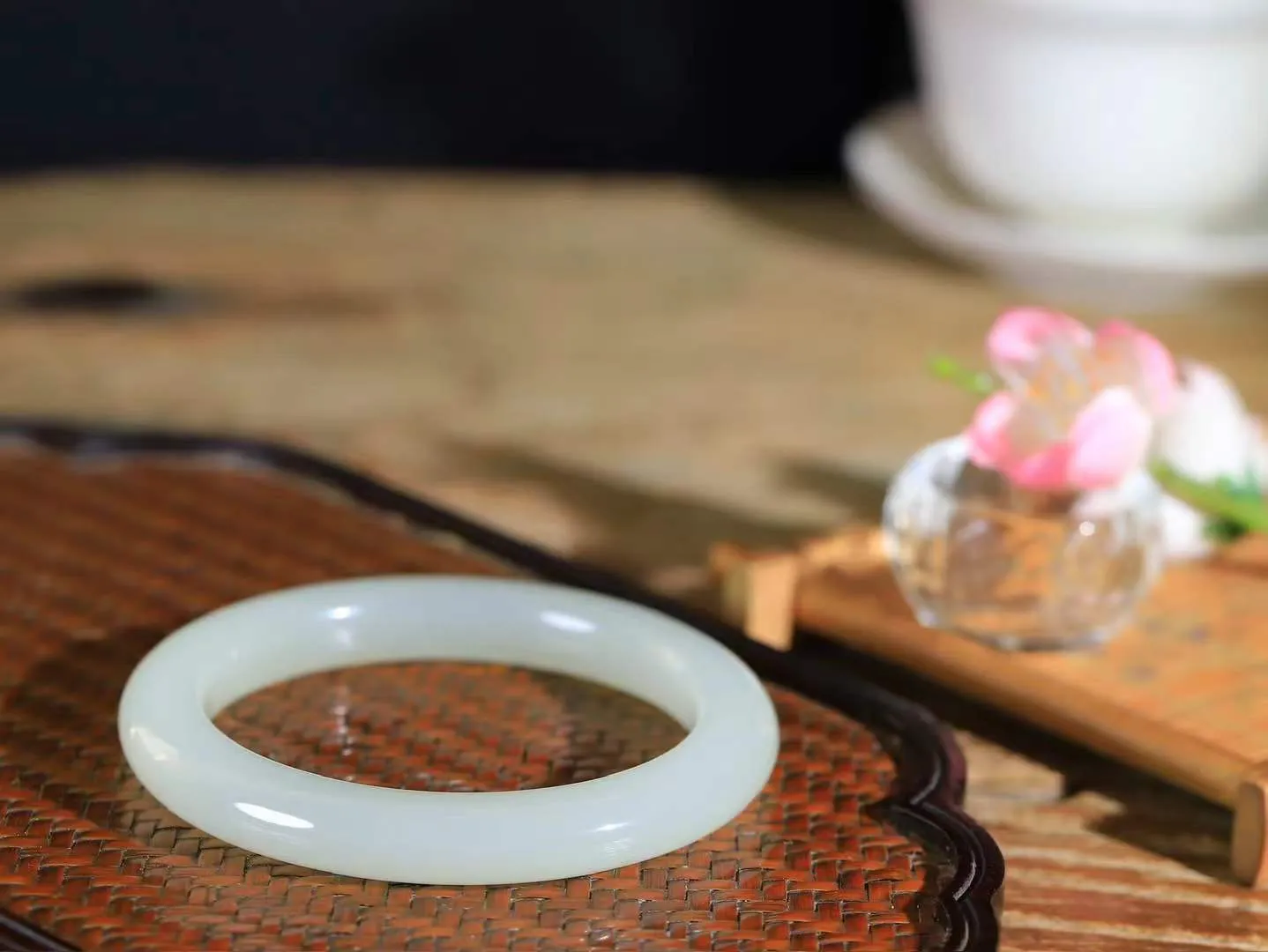 【暖玉生香·手镯】 精品和田玉糖白玉手镯,质地油润细腻,色泽高贵典雅,镯型古朴典雅。在诗情画意的