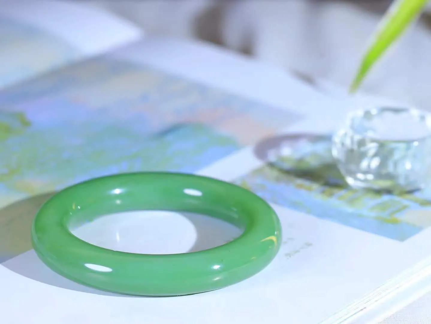 【悠悠芳华.镯】 典藏级和田玉碧玉手镯 玉质温润 青葱岁月,尽收腕中,婉转流畅,凝岁月悠长。盈