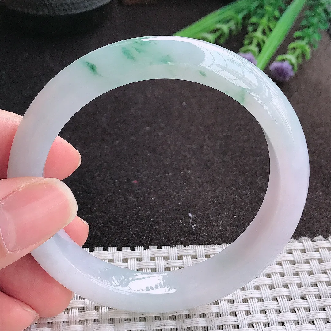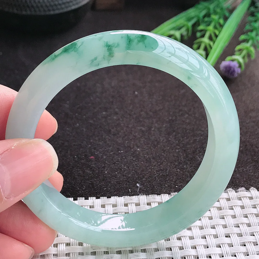 实拍A货翡翠58/12.2/8.7老坑冰润水灵冰飘花手镯宽边玉镯手环