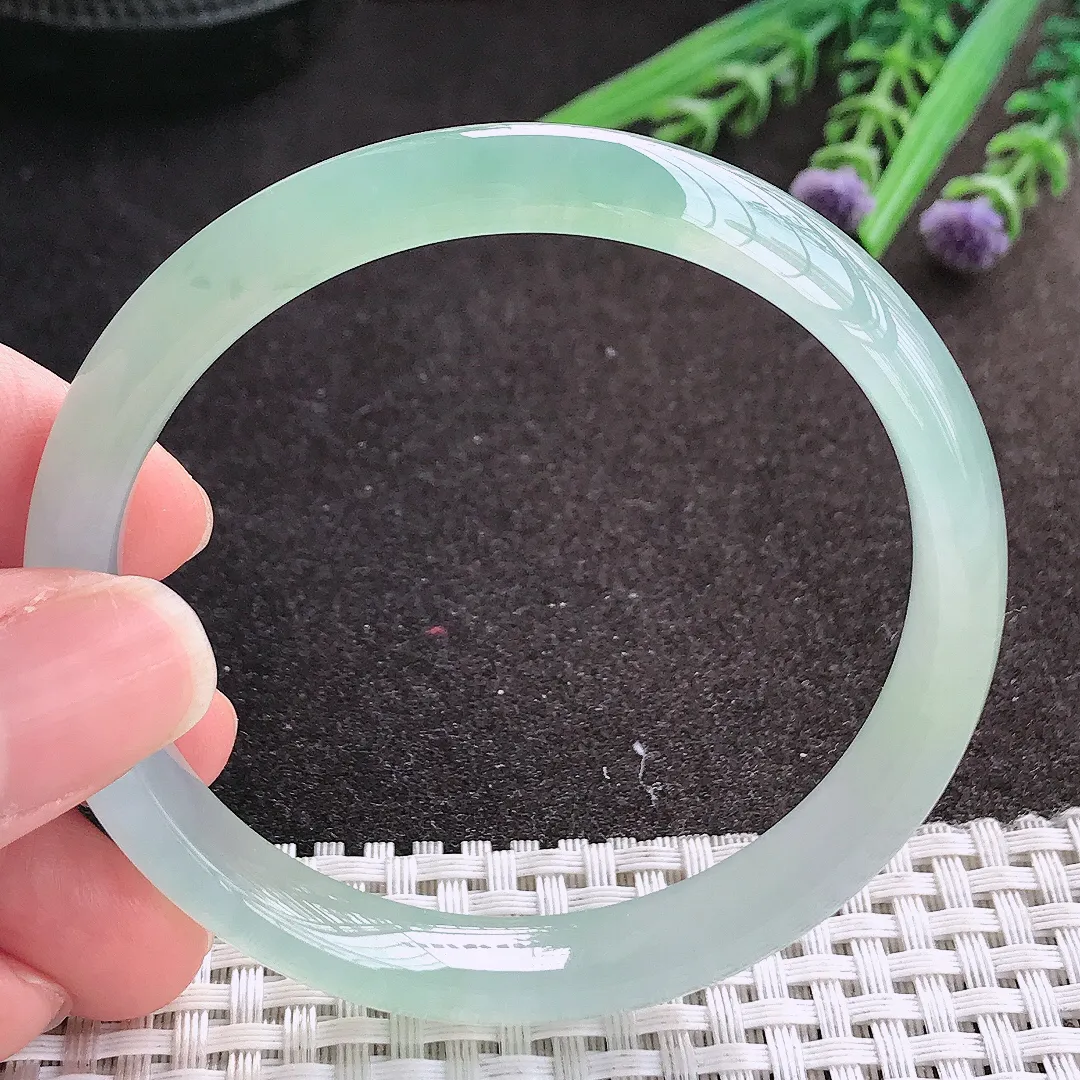 实拍A货翡翠57.5/10/6.8老坑冰胶果冻胶冰晴绿手镯宽边玉镯手环