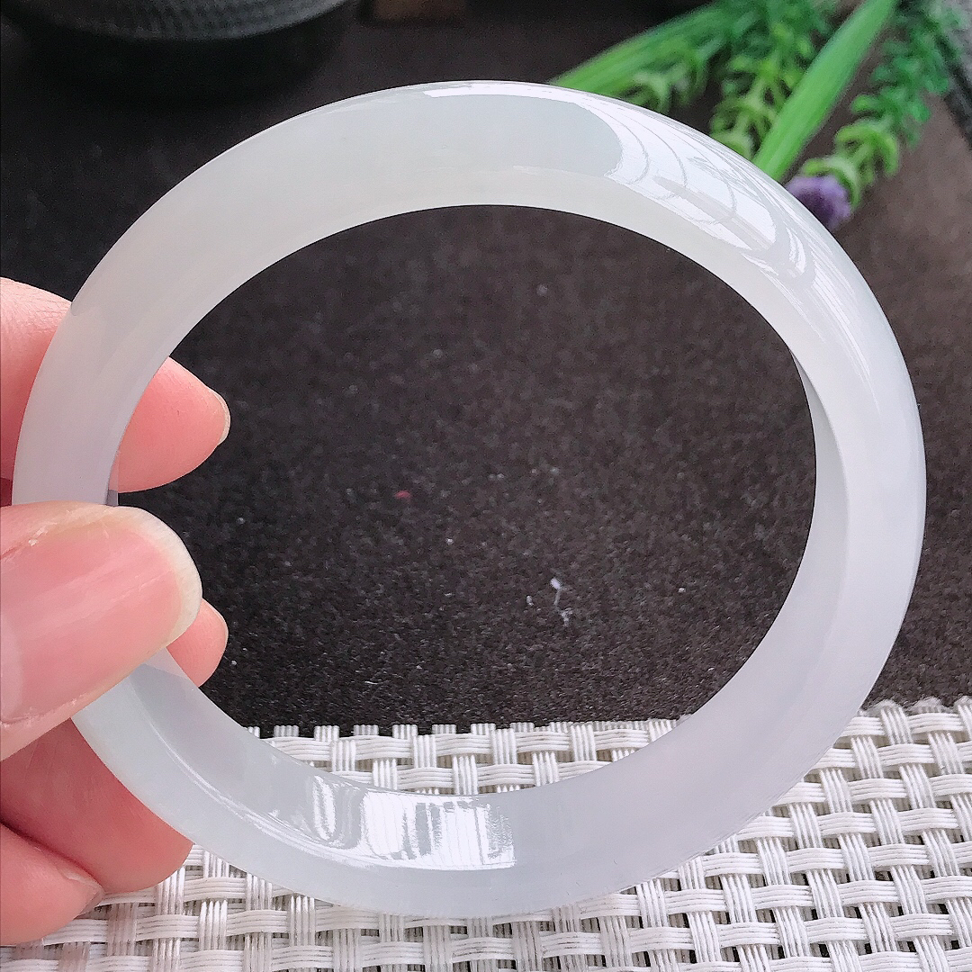 实拍A货翡翠61.5/13.4/8老坑冰透果冻胶白冰手镯宽边玉镯手环