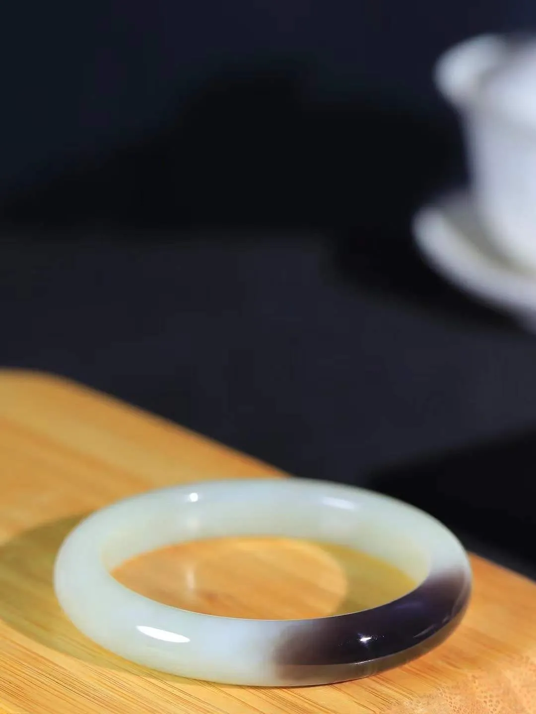 【诗情画意.手镯】 收藏级️和田玉双色手镯 细腻油脂,手感润滑。意韵飘渺,温雅细腻,工艺精