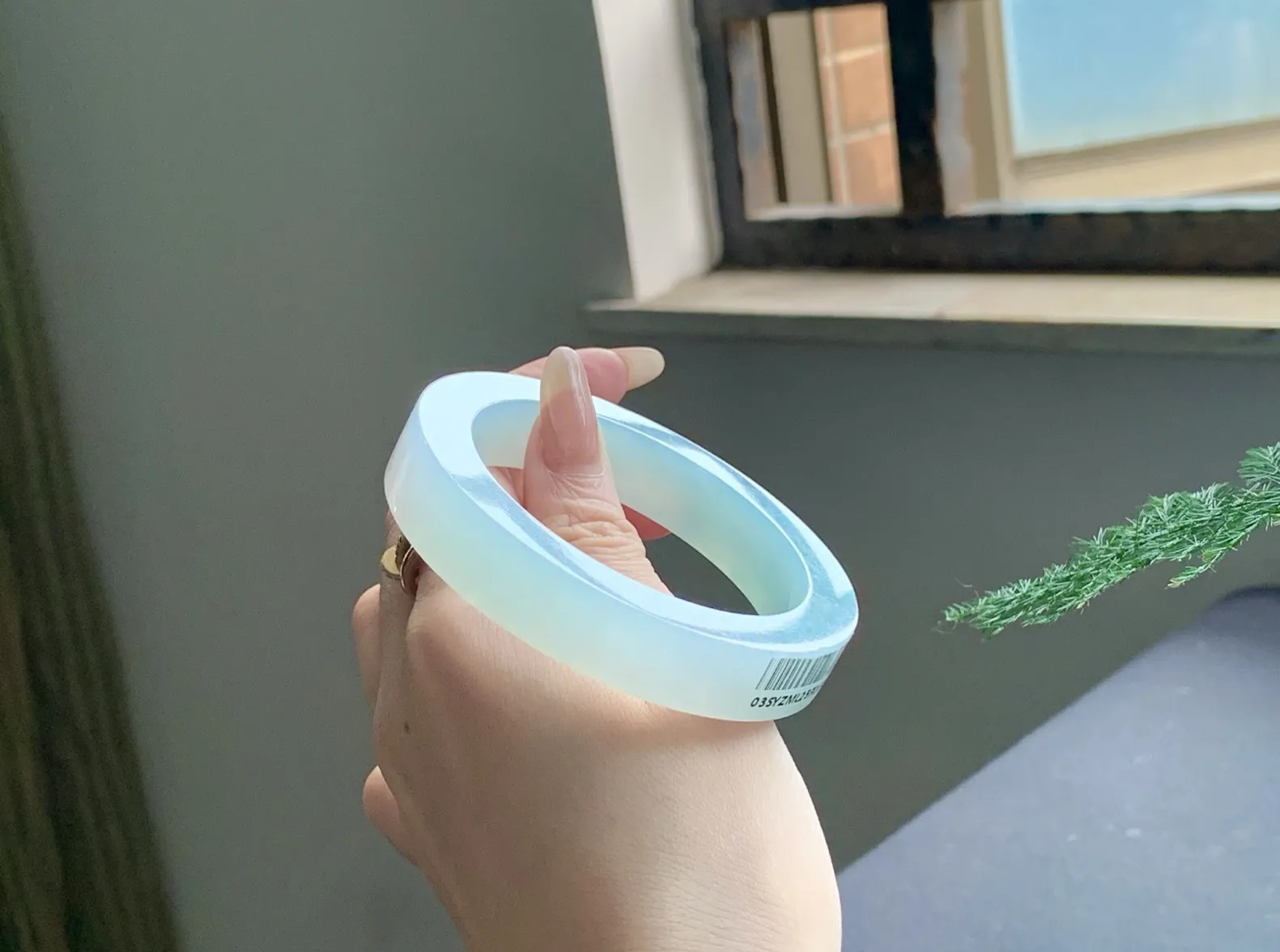 【翡翠名称】老种冰飘花55.6正圈口手镯 【翡翠尺寸】55.6/12.5/8mm适合54.6-57正
