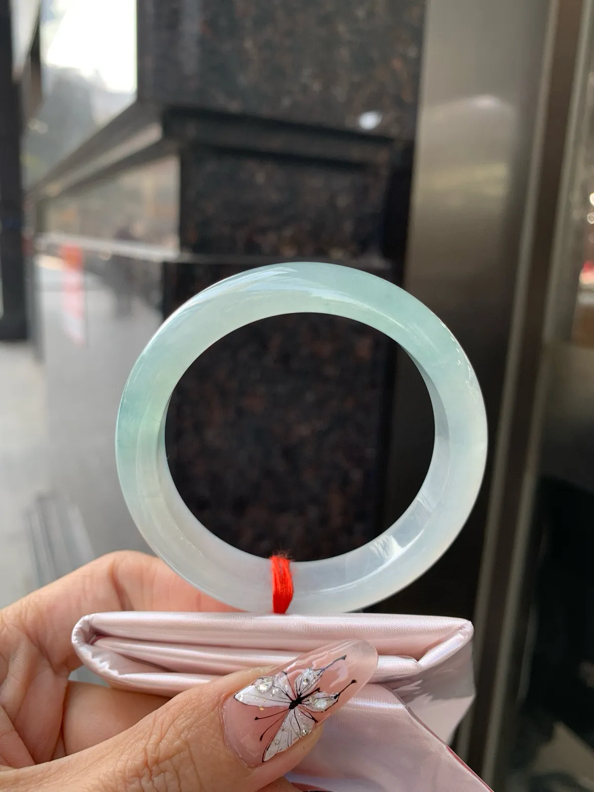 【翡翠名称】老种冰春彩54.5圈口圆条手镯 【翡翠尺寸】54.5*10.3*10.5mm适合54.5