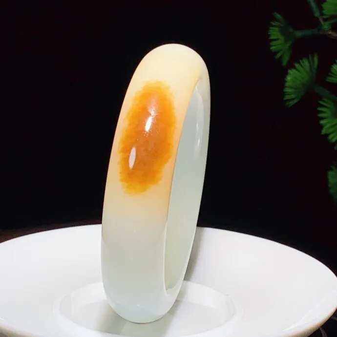 55圈口。新疆和田玉且末糖羊脂白玉手镯。且末糖一口糖手镯。圈口55条宽16厚11重81克。白度一级。
