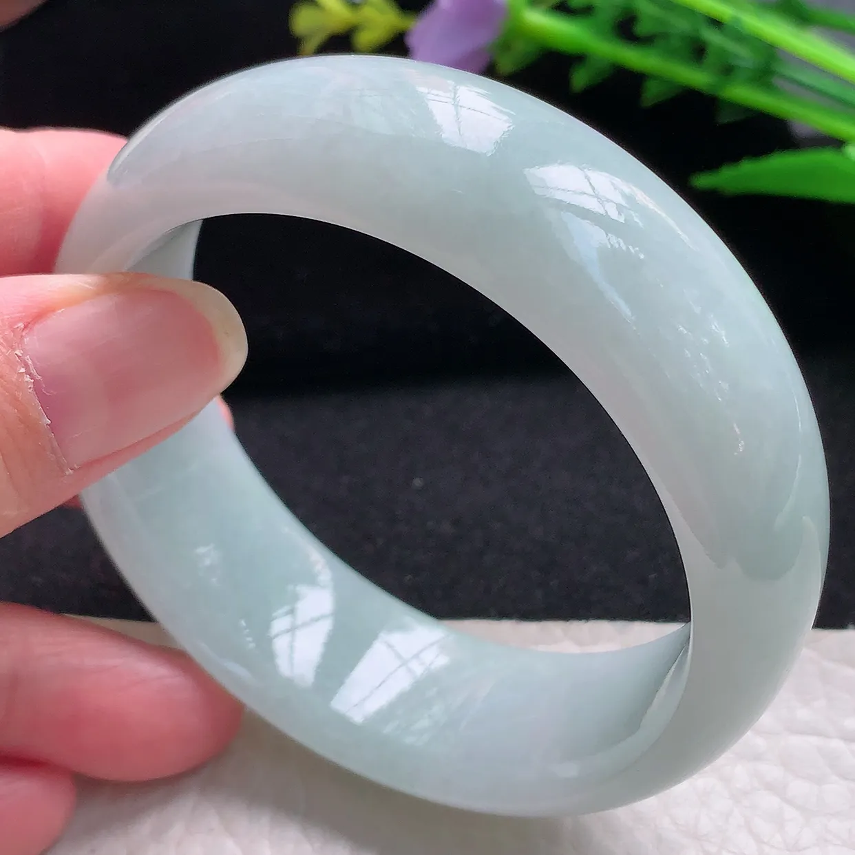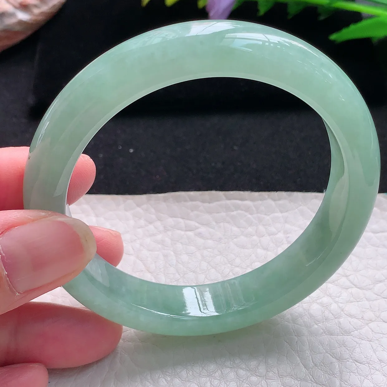 js自然光55*19.5*8轮胎镯 天然缅甸翡翠浅绿大气宽边珠宝玉手镯 玉手环