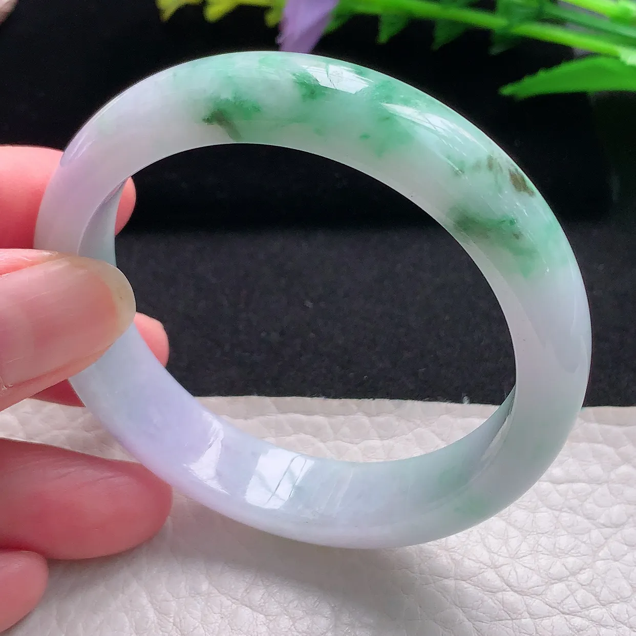 jm小圈口53.5*12.7*7.5平安镯 天然缅甸翡翠春带彩甜美宽边珠宝玉手镯 玉手环