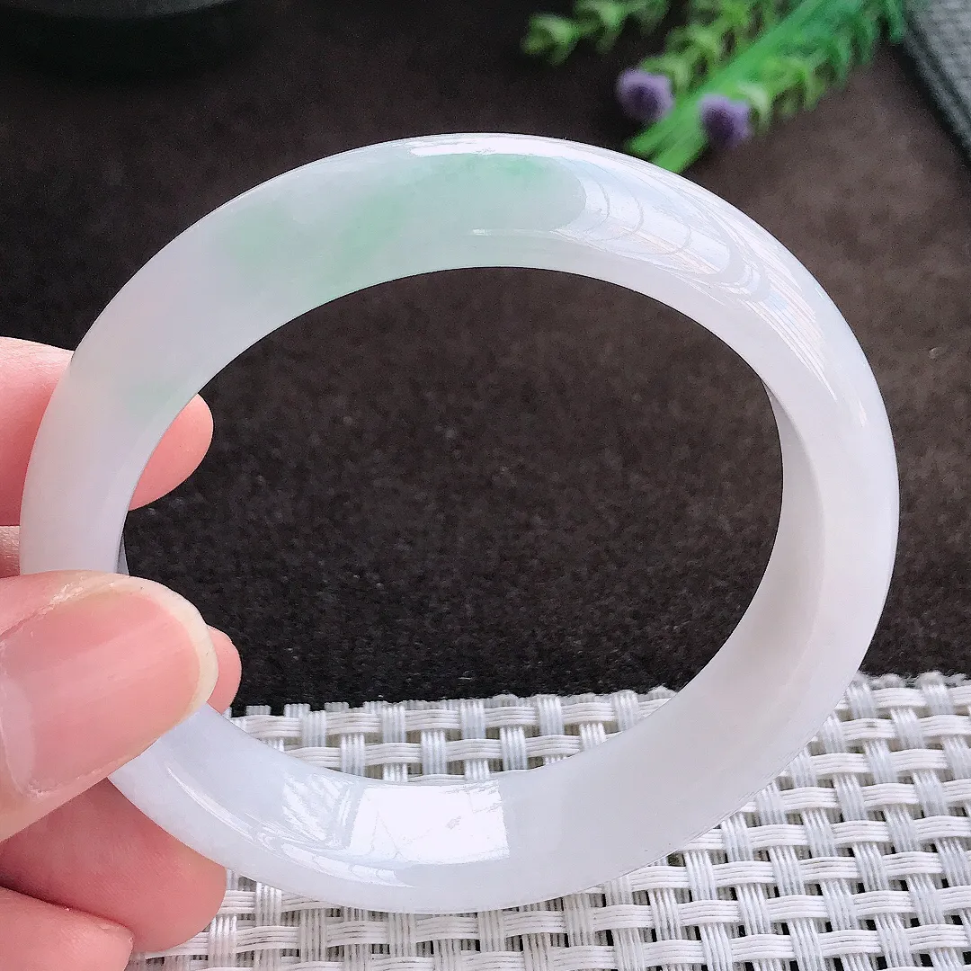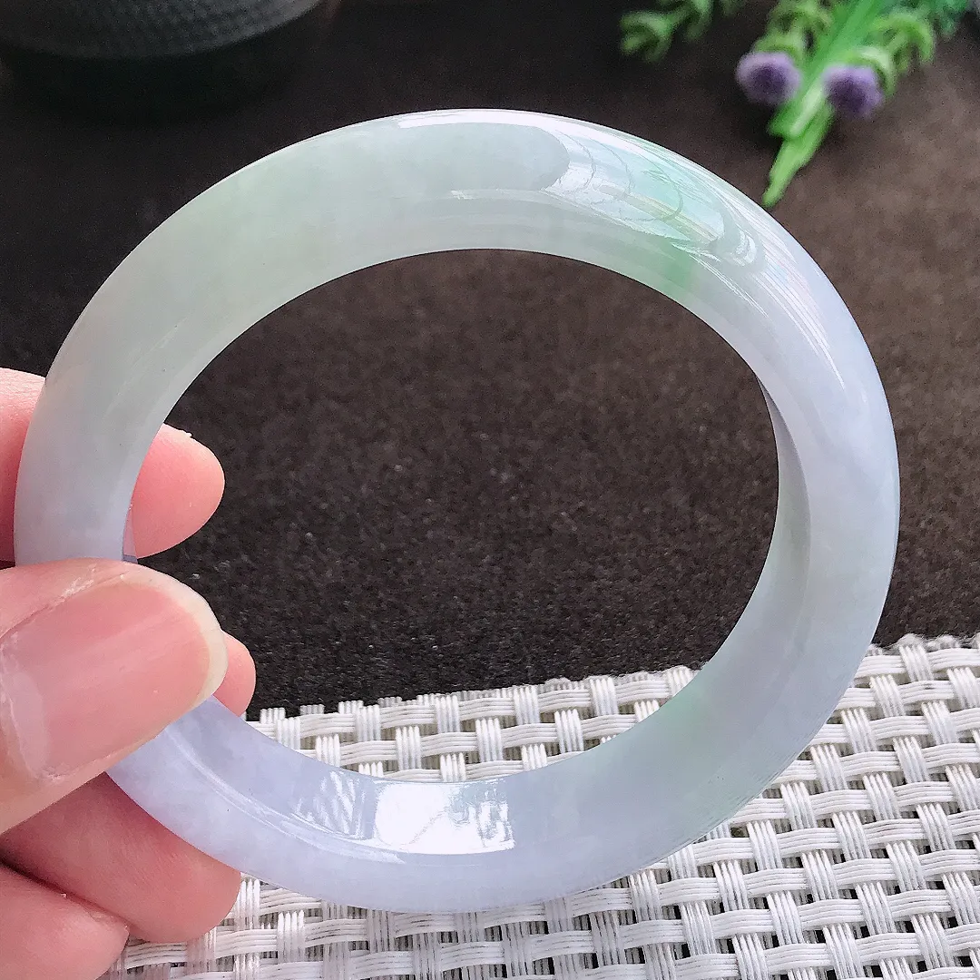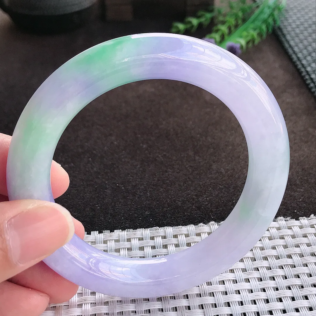 天然a货翡翠56.5/12.3/9老坑秀气冰润紫罗兰手镯宽边翡翠玉手镯