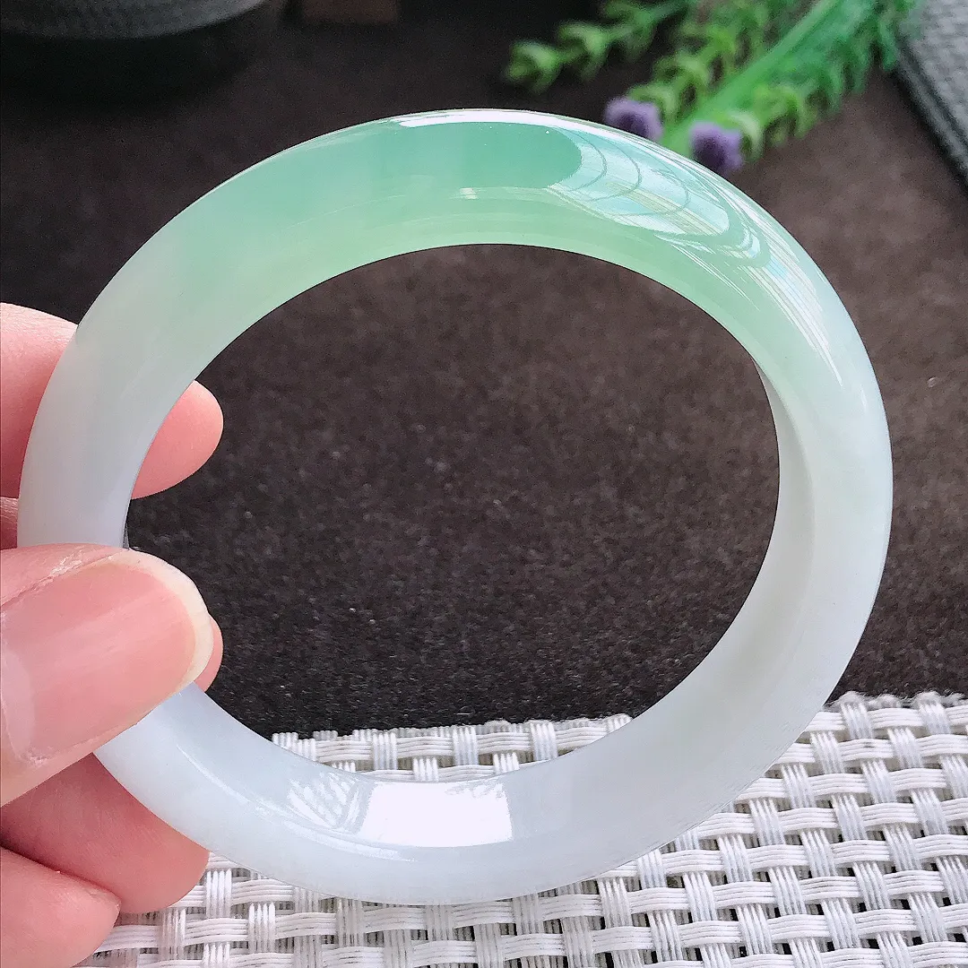天然a货翡翠57.5/14.8/8老坑秀气冰胶轮胎手镯宽边翡翠玉手镯