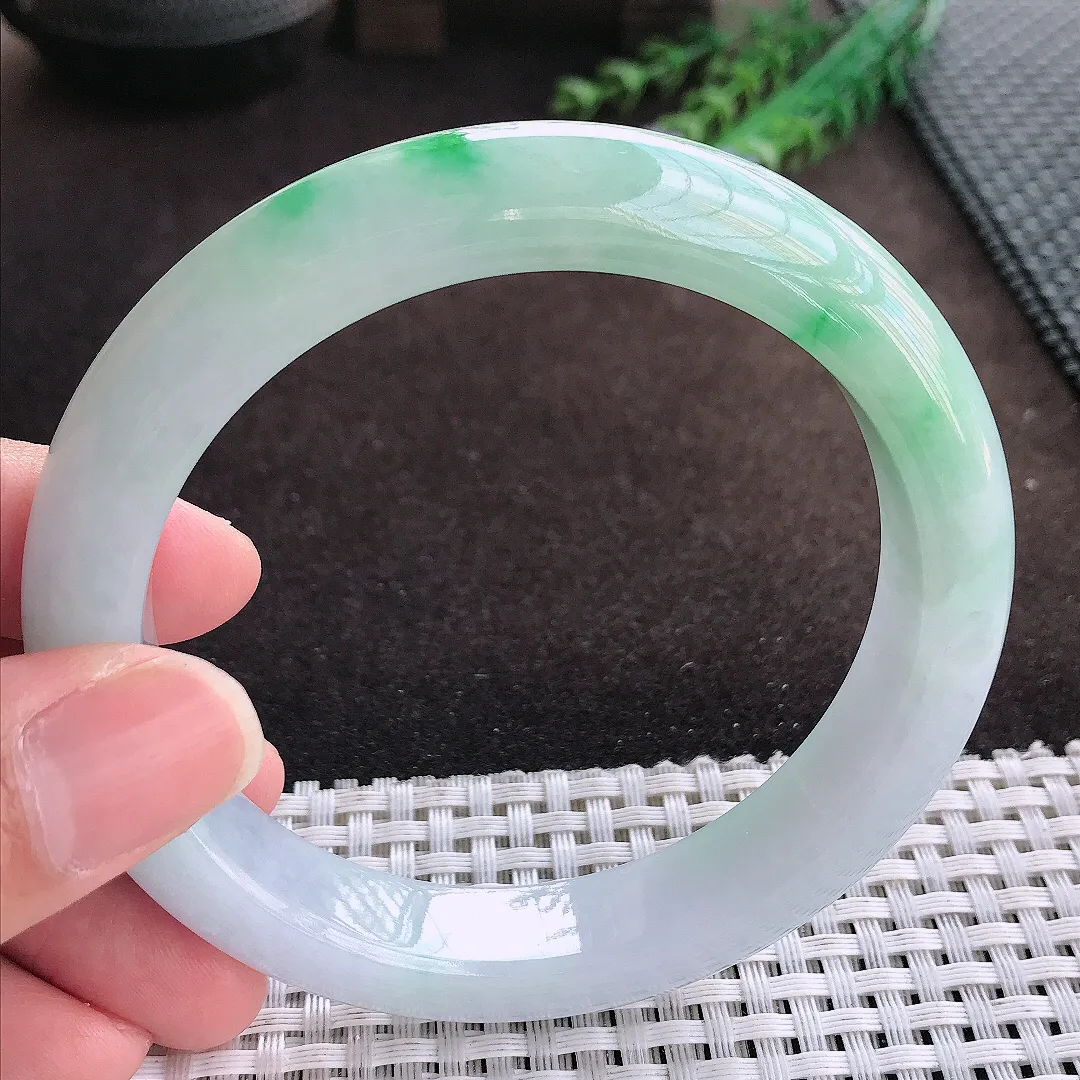 天然a货翡翠57/12.3/8.9老坑冰链果冻冰晴绿手镯宽边翡翠玉手镯
