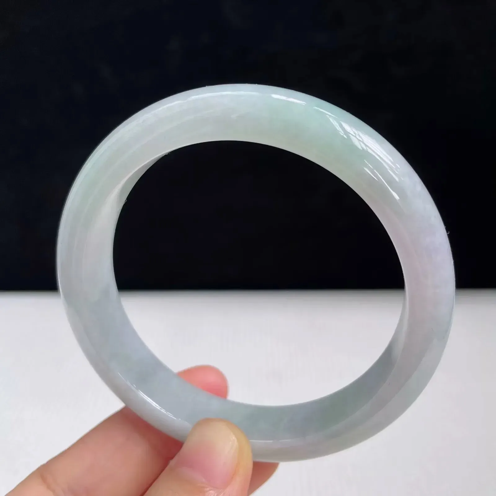 55mm自然光拍摄天然翡翠淡绿好种水正圈手镯43.42克