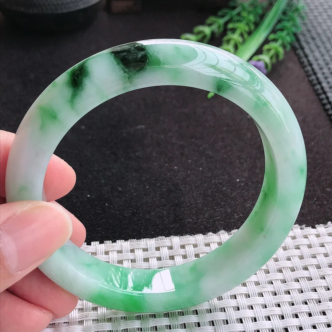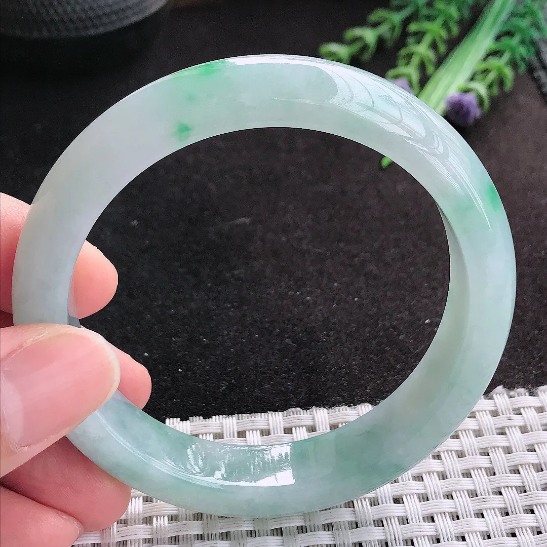 天然A货翡翠60.5/12.6/9.4老坑精美温润飘绿手镯大圈口宽边玉手镯