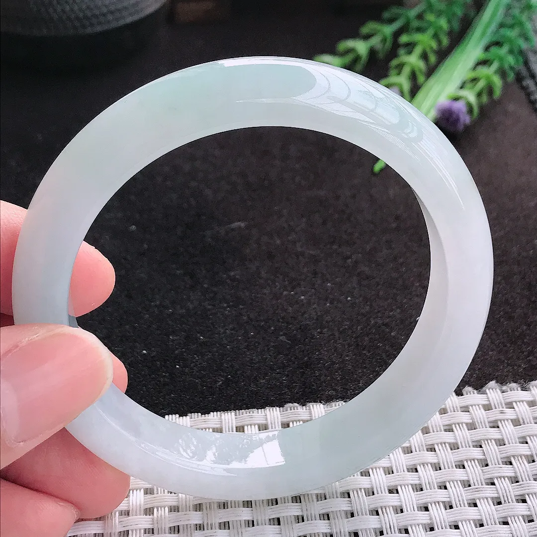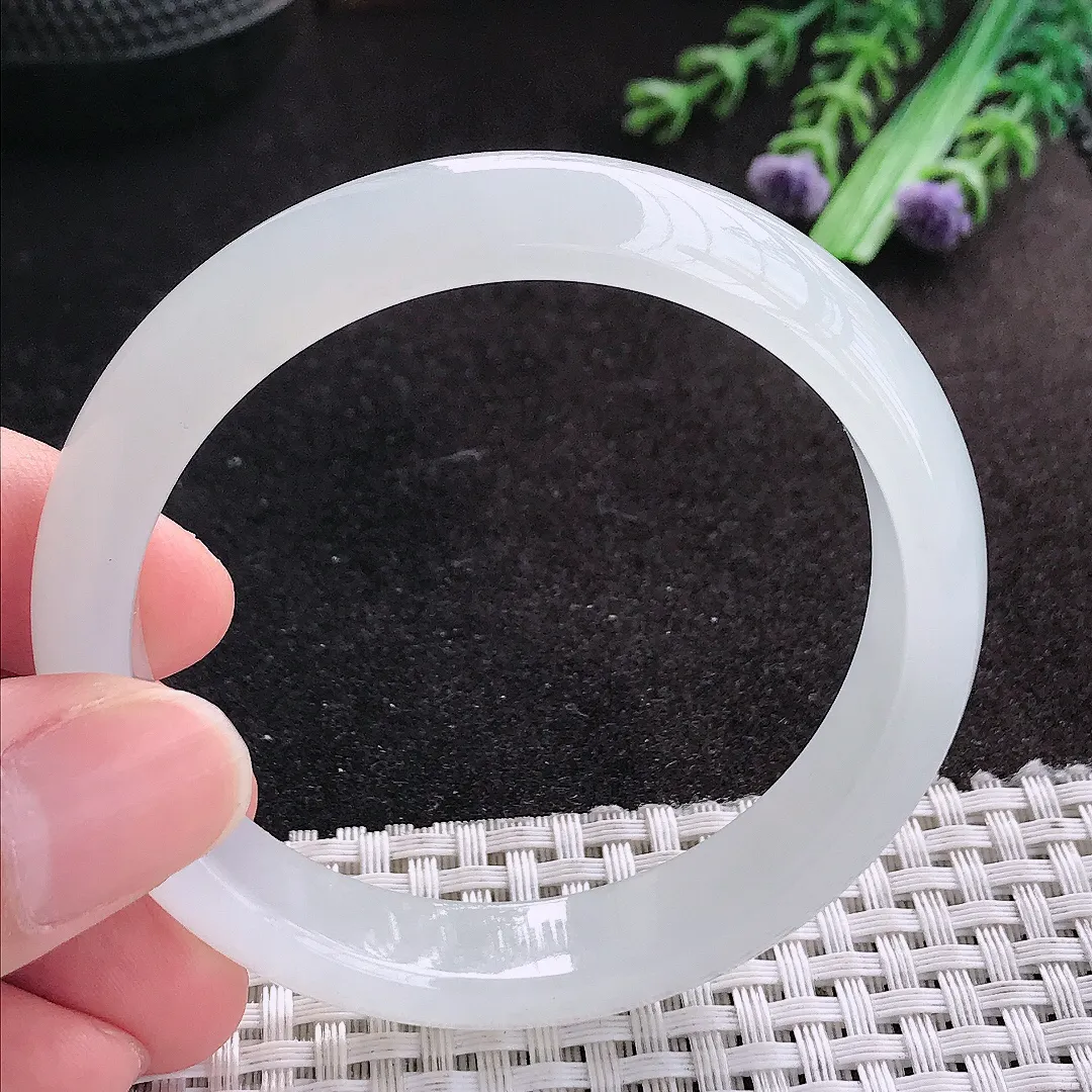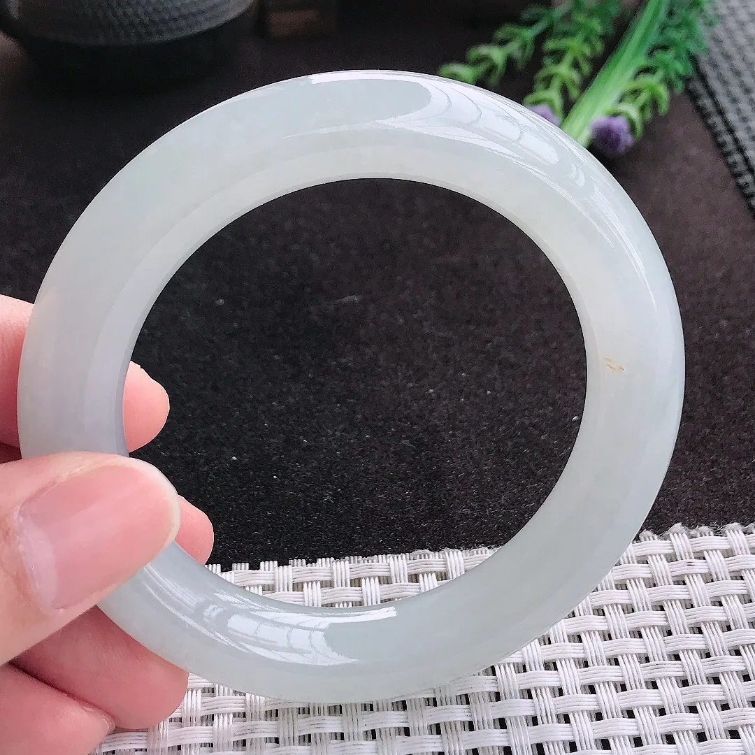 天然A货翡翠54.8/12.6/7.4老坑冰胶水灵月光白手镯宽边玉手镯