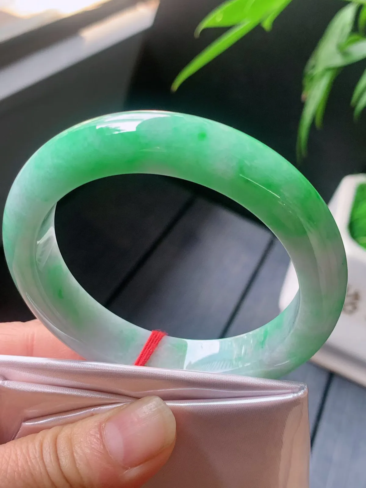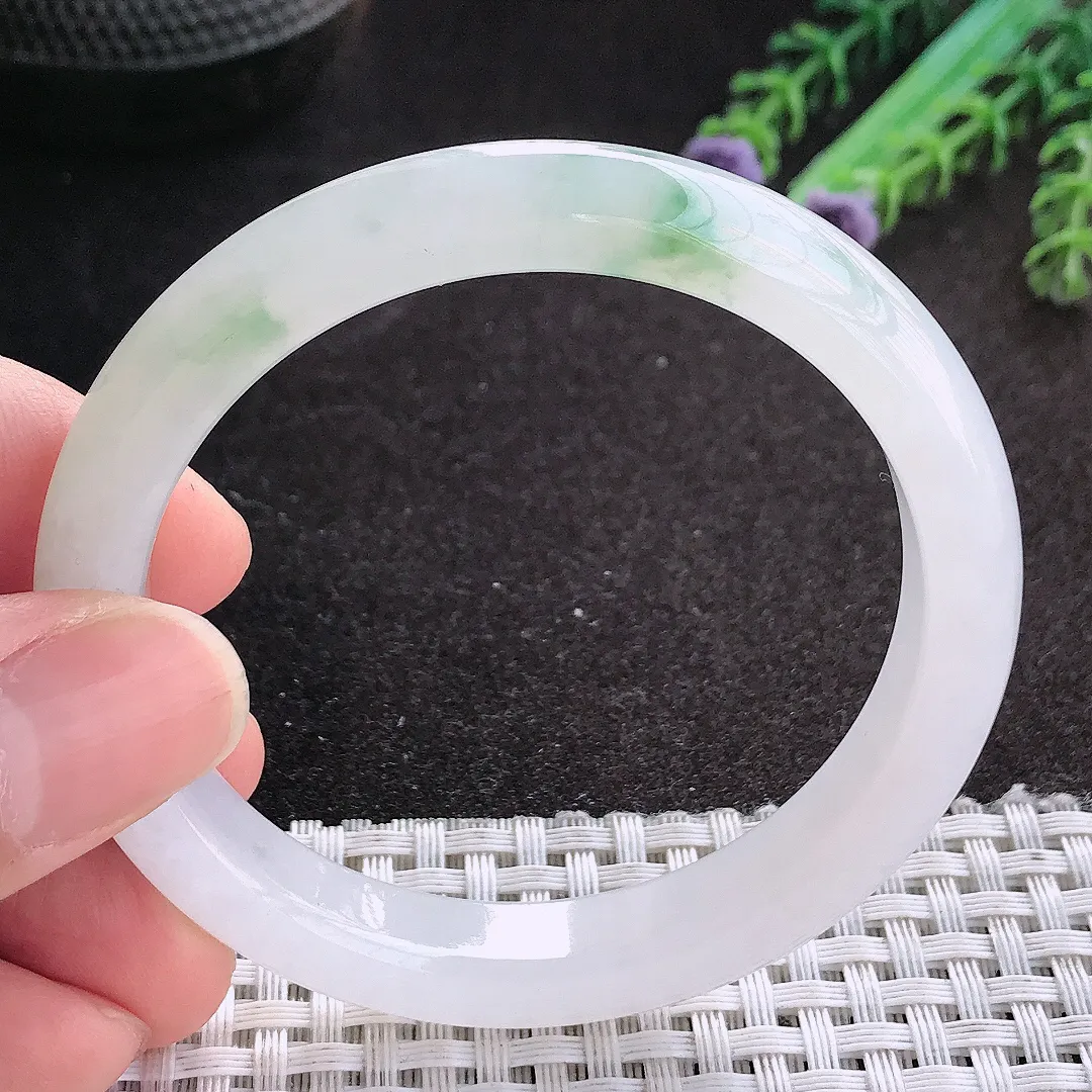 天然A货翡翠56.5/12.5/8.5老坑冰胶果冻冰晴手镯宽边玉镯