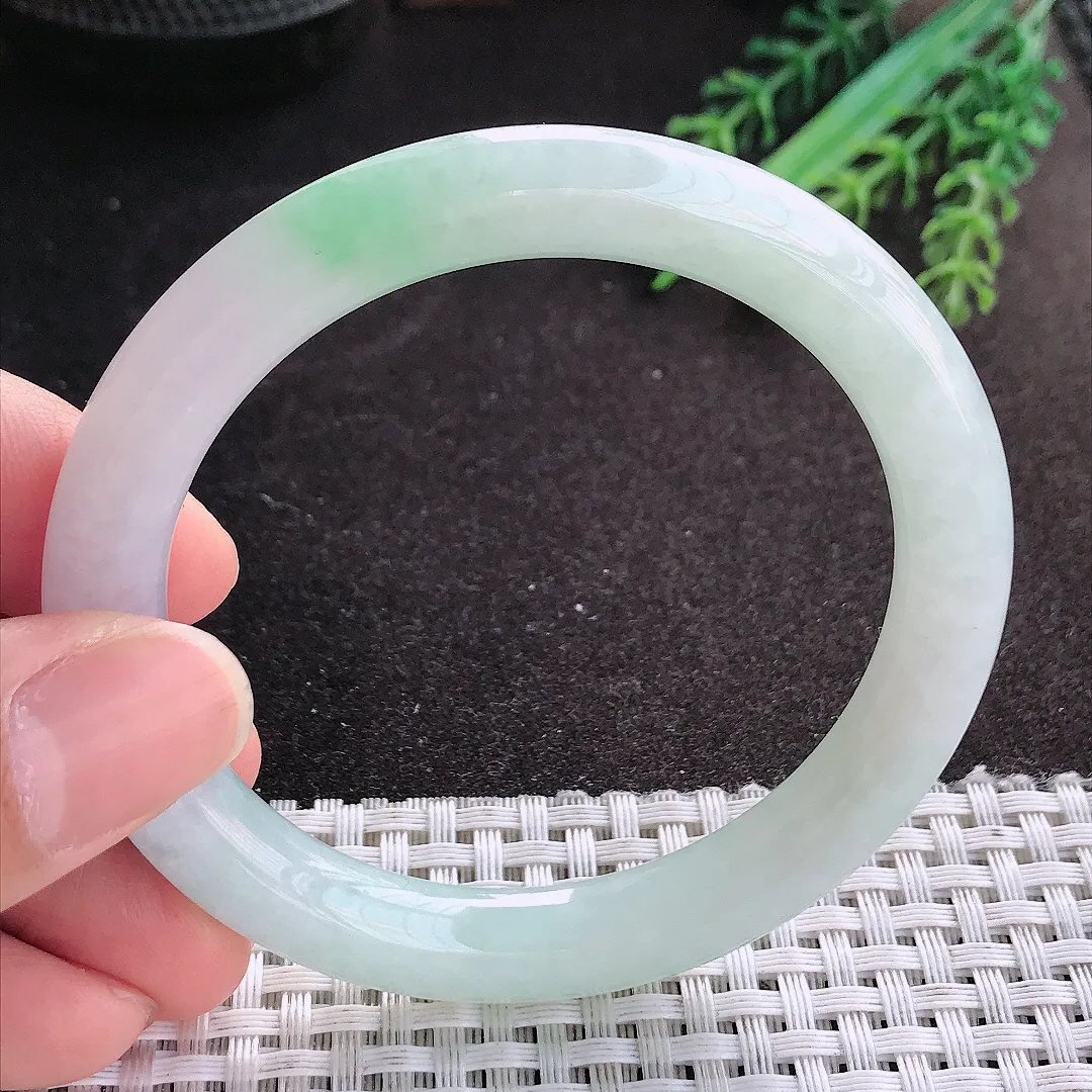 天然A货翡翠55/9/8.8老坑秀气冰润飘绿圆条手镯玉镯