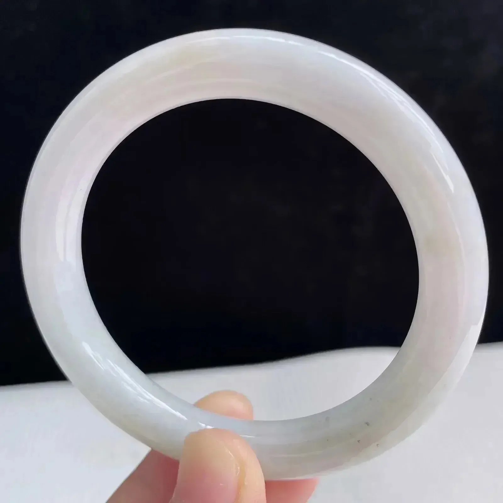54圈有种有色天然翡翠A货淡紫玉手镯好种水春彩水润手镯57.30g