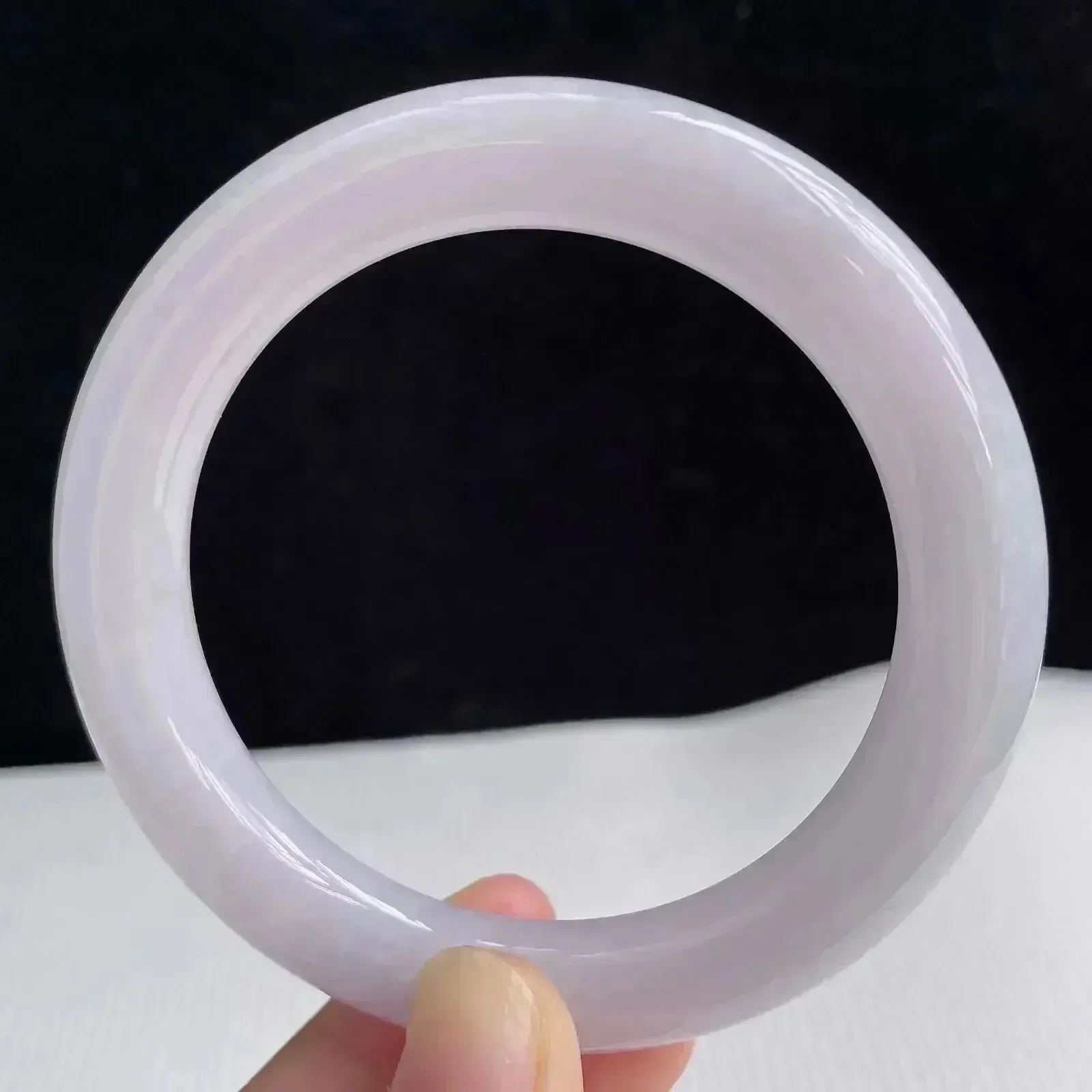 58圈有种有色天然翡翠A货淡紫玉手镯好种水春彩水润手镯67.22g
