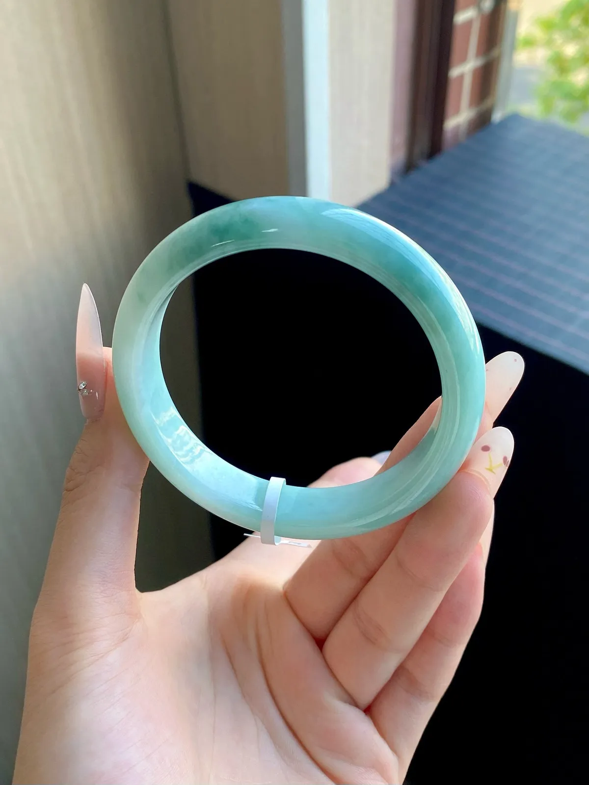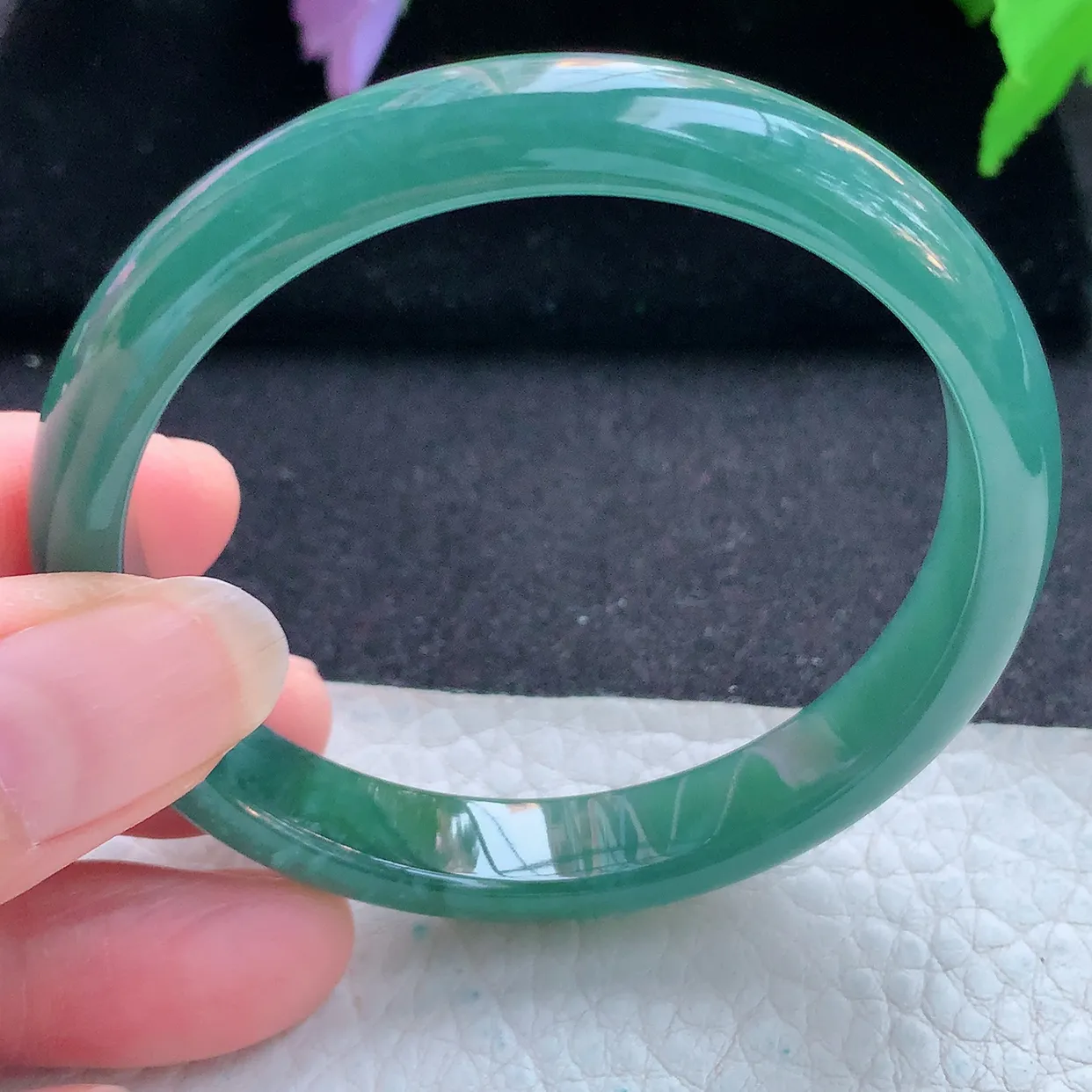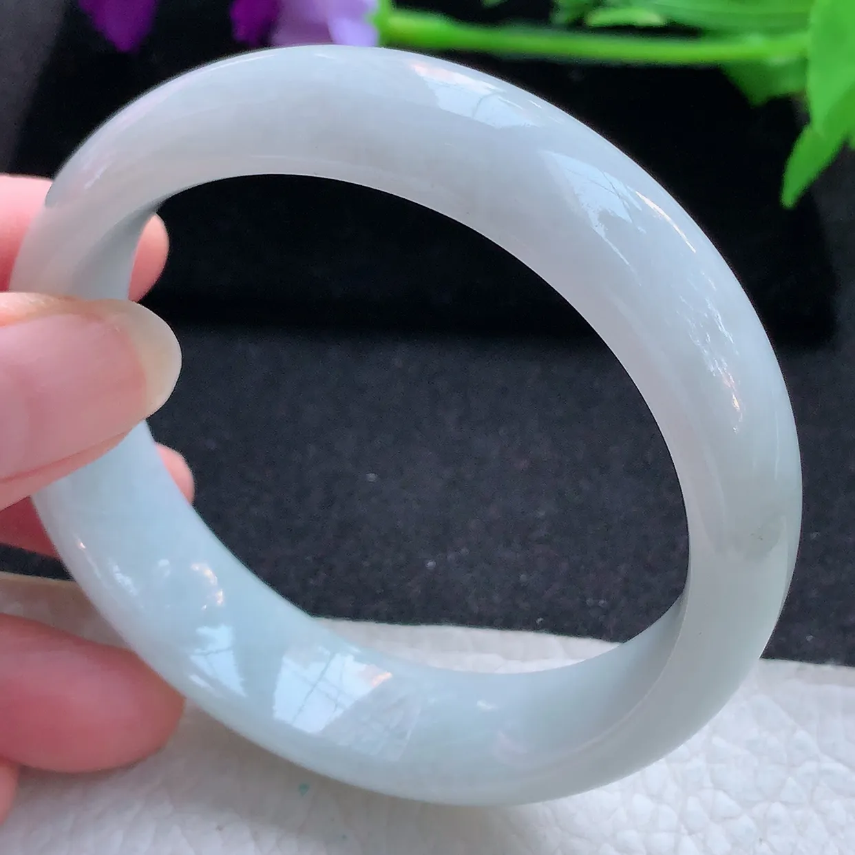 55.6圈有种有色天然翡翠A货玉手镯好种水浅绿水润手镯 44.07g