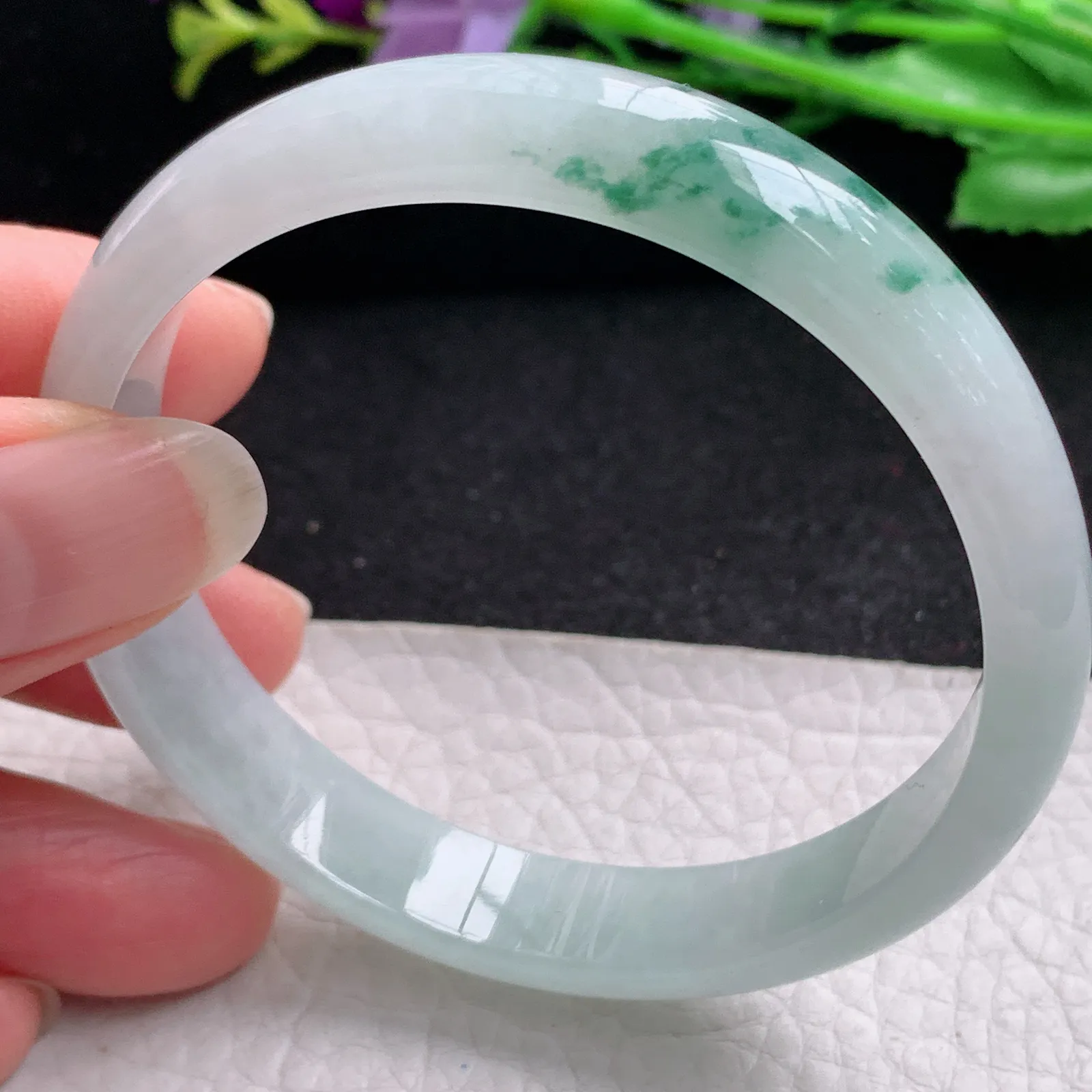 xh实拍56.5*11*6.3平安镯 缅甸翡翠精美冰飘花秀气宽边玉手镯 玉手环