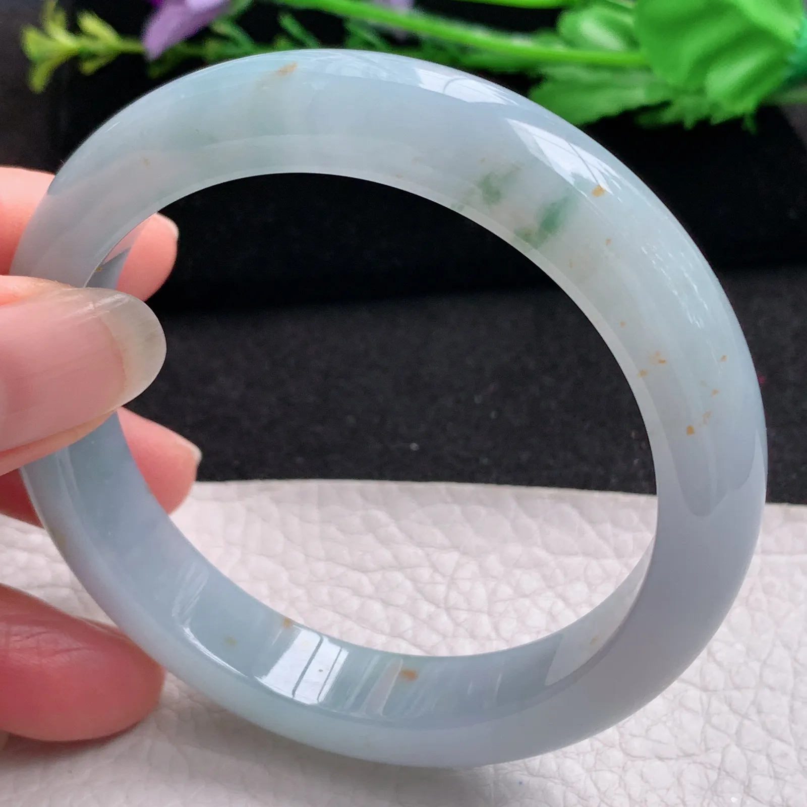 ee实拍57*11.8*8.5平安镯 缅甸翡翠精美冰飘花洒金宽边玉手镯 玉手环