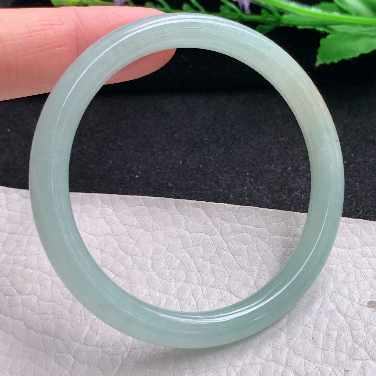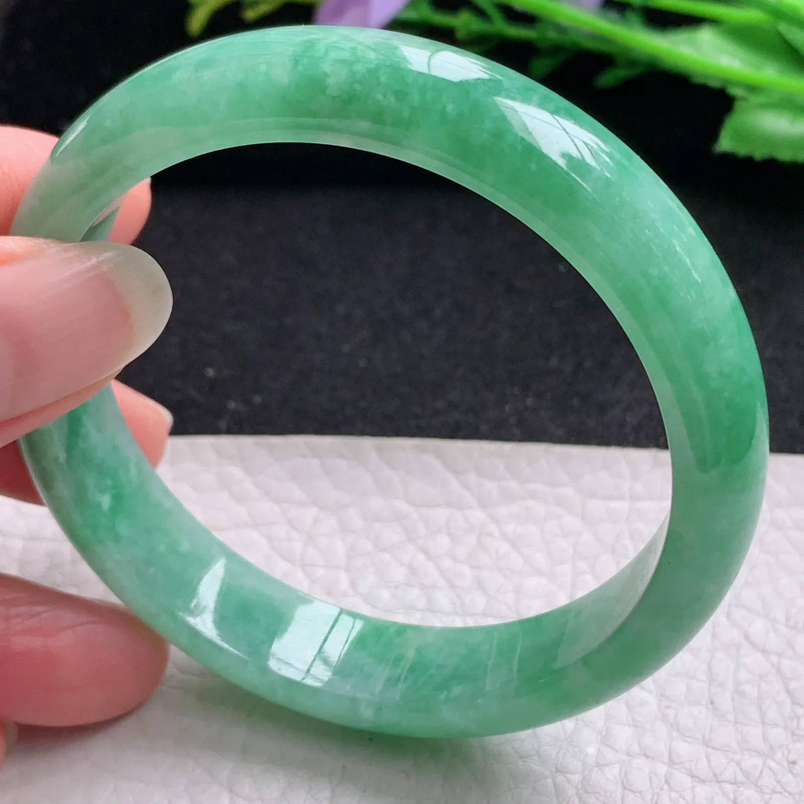 xx实拍54*6.7*7美人镯 缅甸翡翠精美浅绿冰润圆条玉手镯 叮当镯