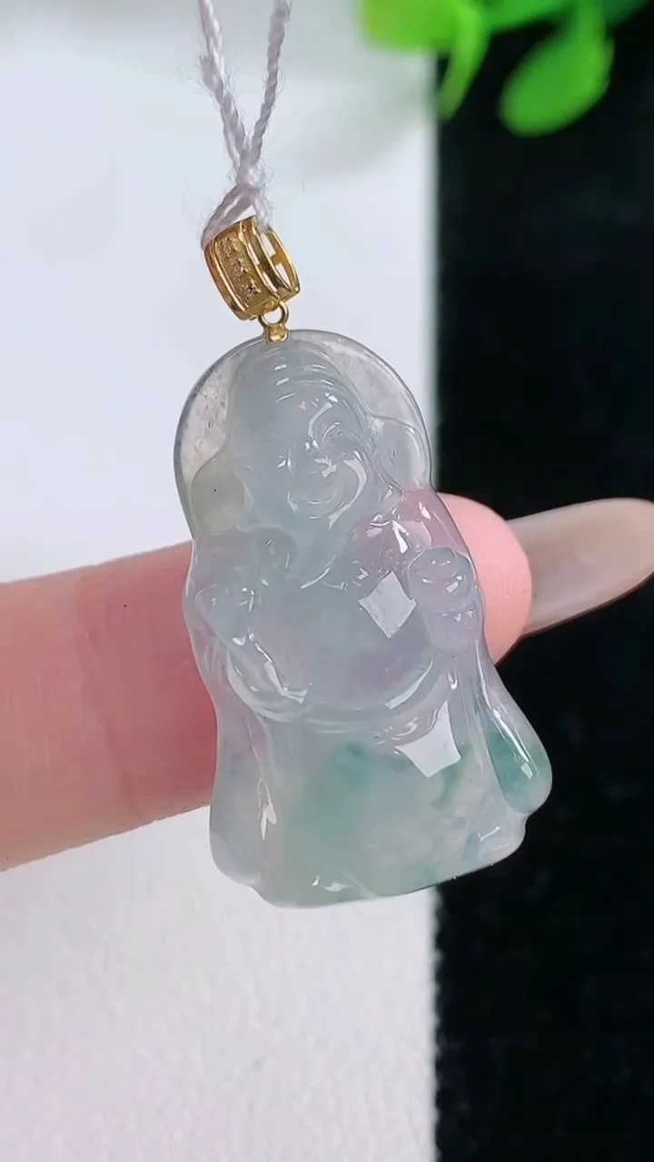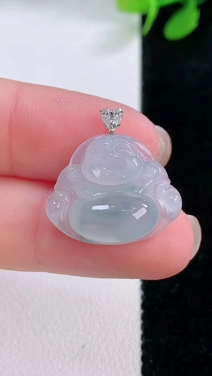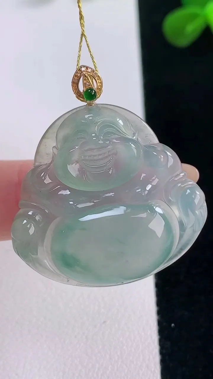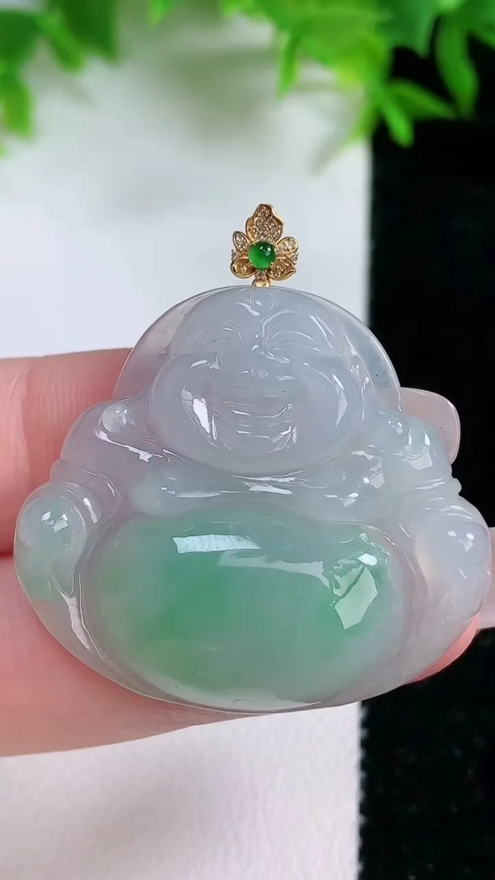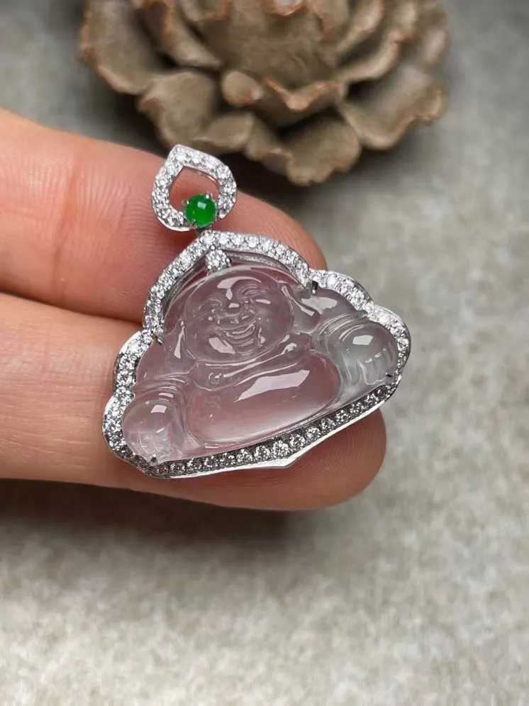 翡翠淡紫笑佛吊坠【0元助力】640903666