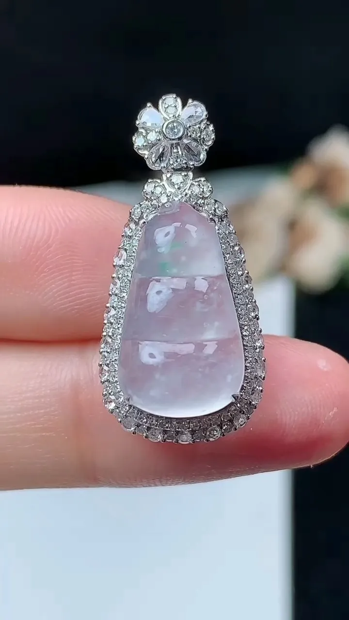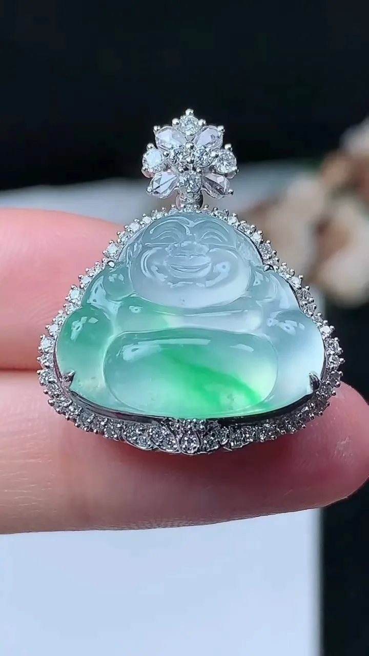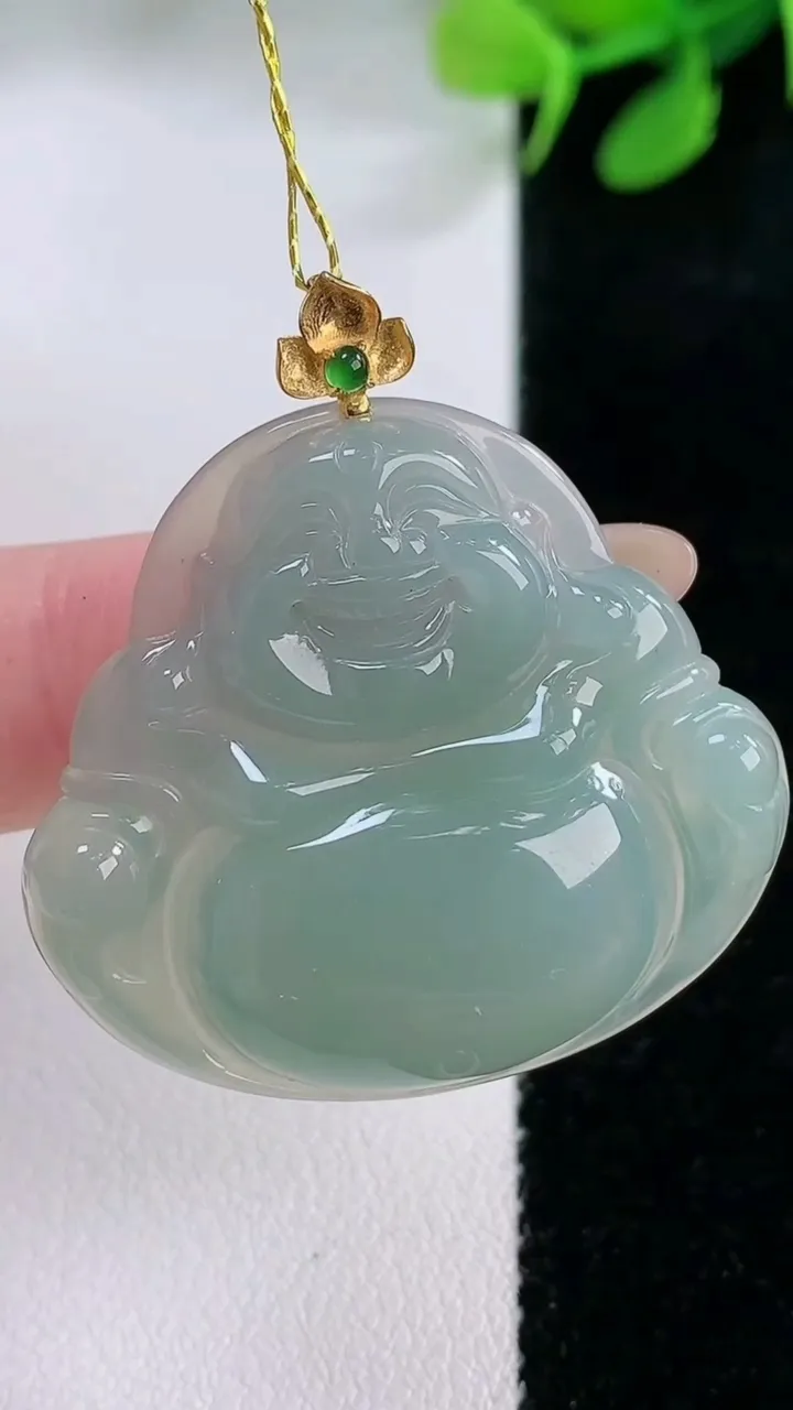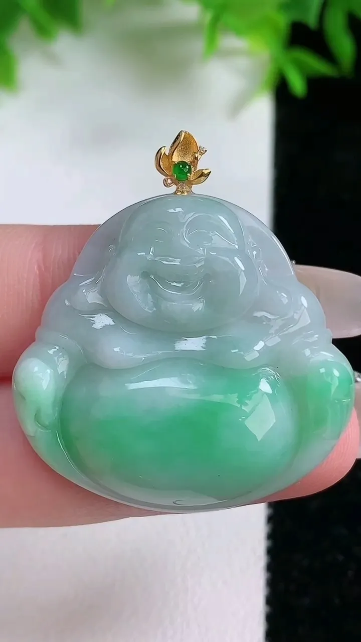翡翠淡紫笑佛吊坠【0元助力】640903666