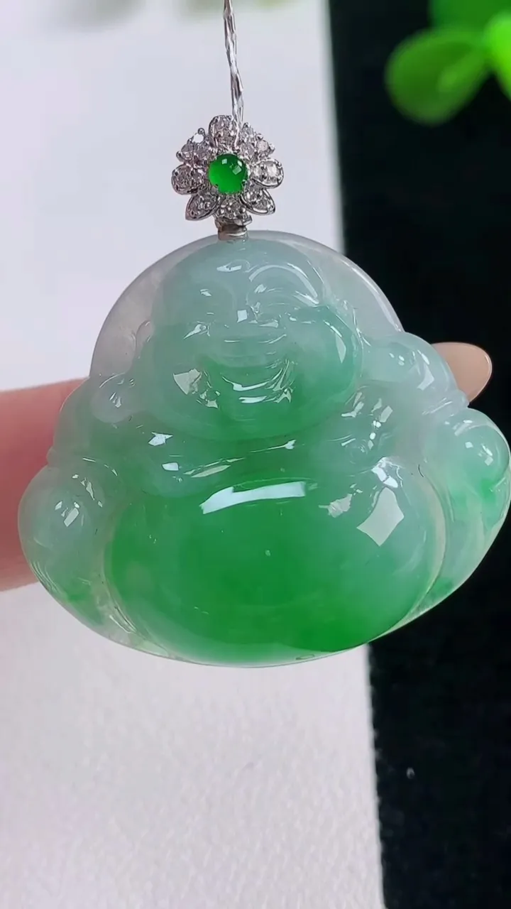 天然A货翡翠种飘花佛公吊坠,尺寸29.2-31.3-5.6,重量:8.23g 11月19日