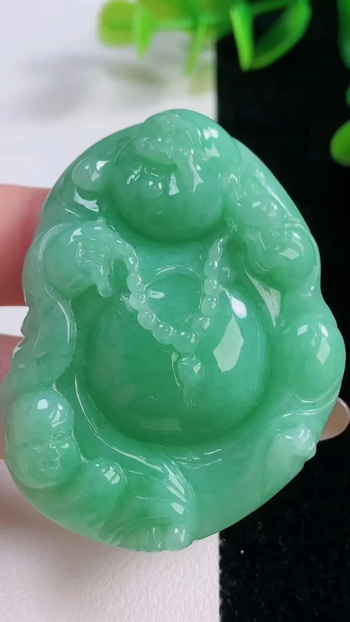 天然A货翡翠佛公吊坠,尺寸29.2-33-5.9,重量:8.80g 11月19日