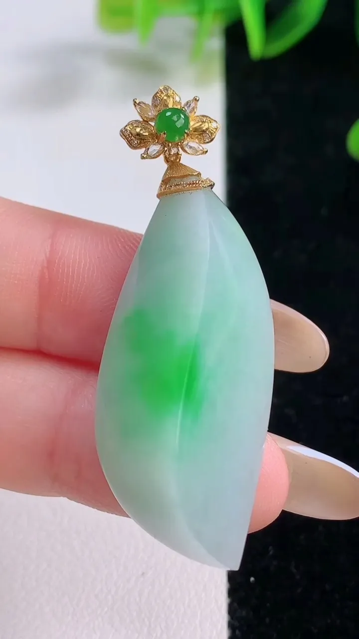 18k金钻镶嵌满绿葫芦吊坠 玉质细腻 色泽清新艳丽 整体尺寸33*19.5*11.8