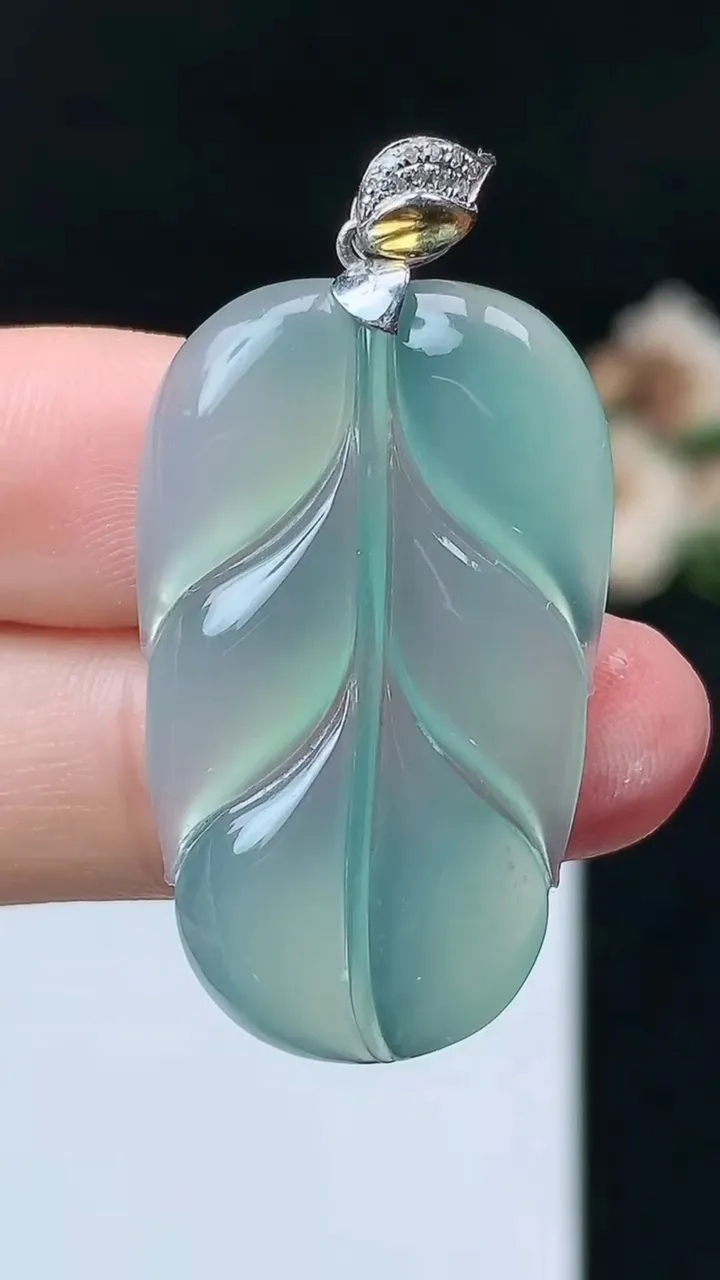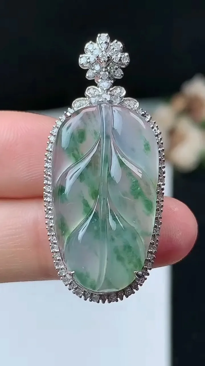 天然A货翡翠飘花金枝玉叶 叶子吊坠,尺寸40.2-18.2-9 11月26日
