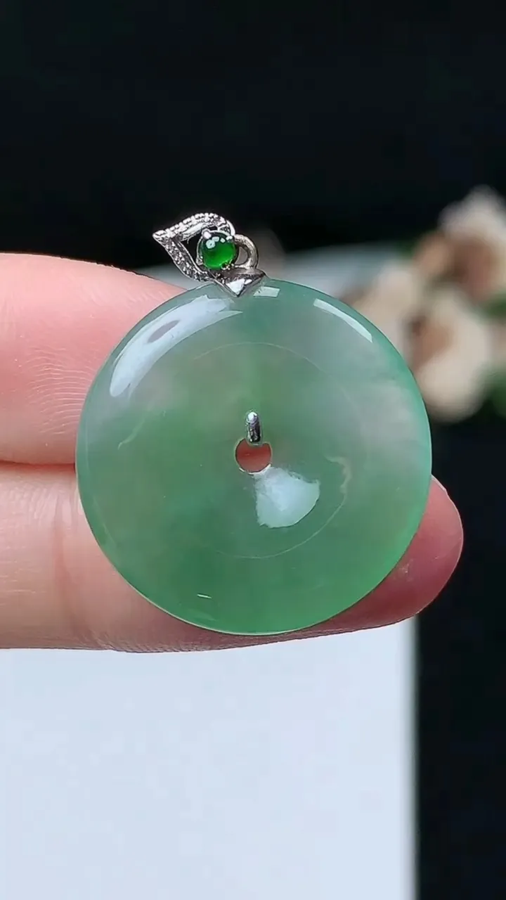 天然A货翡翠福豆吊坠,尺寸29.2-14-10,裸石17.4-10.2,重量:3.42g 11月26