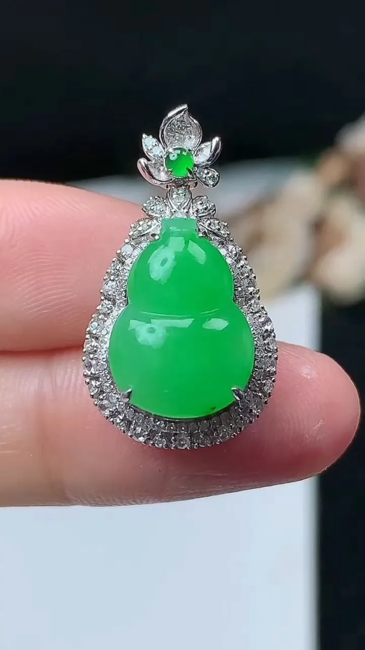 天然A货翡翠葫芦吊坠,尺寸25.8-14.7-10.4,裸石14.6-10.6,重量:4.30g 1