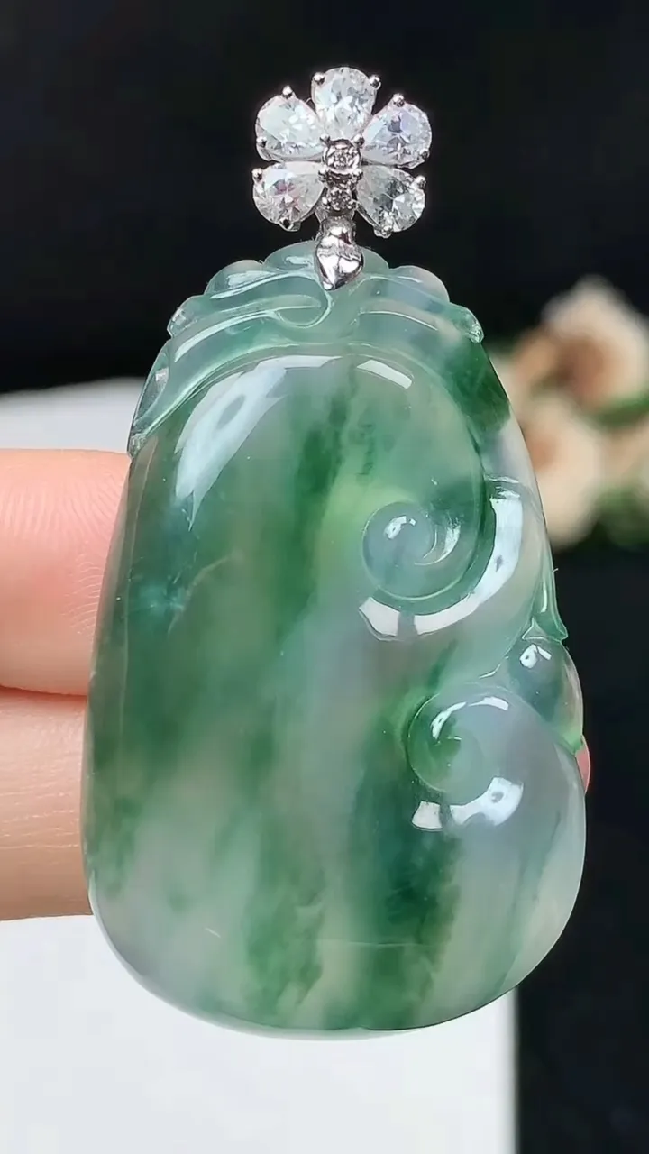 天然A货翡翠如意吊坠,尺寸41-26.6-5.9,重量:14.02g 11月26日
