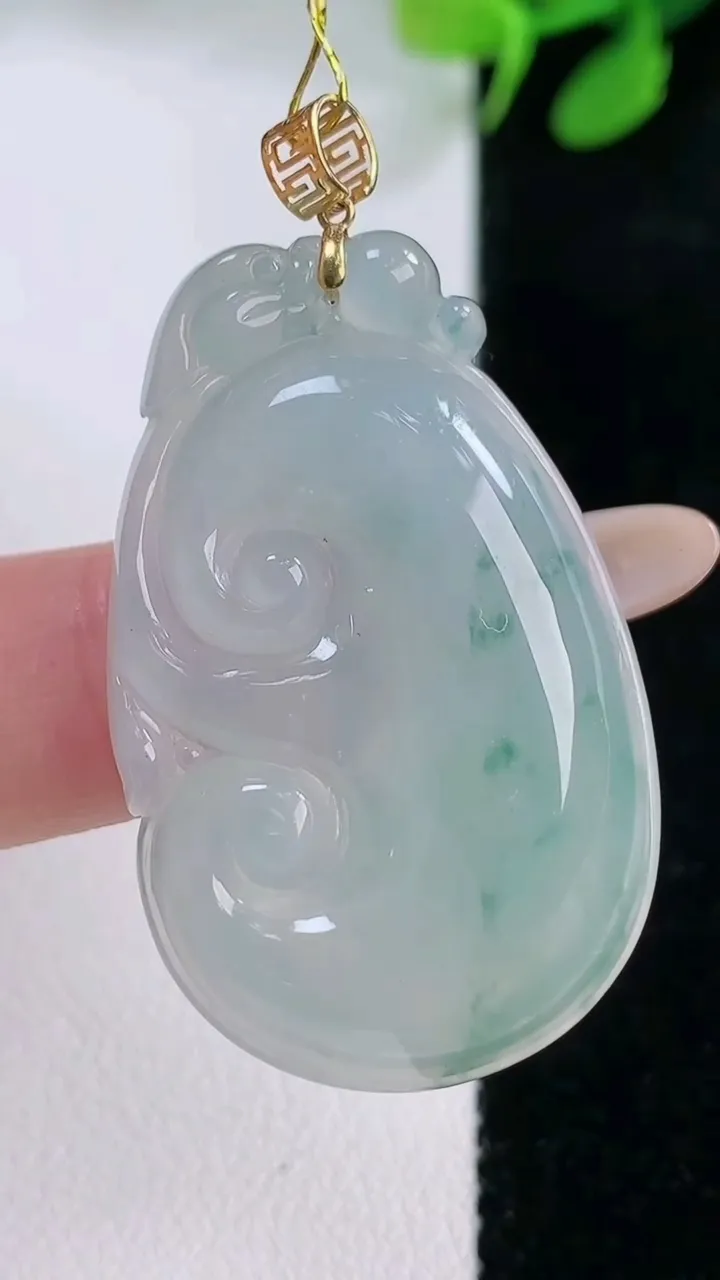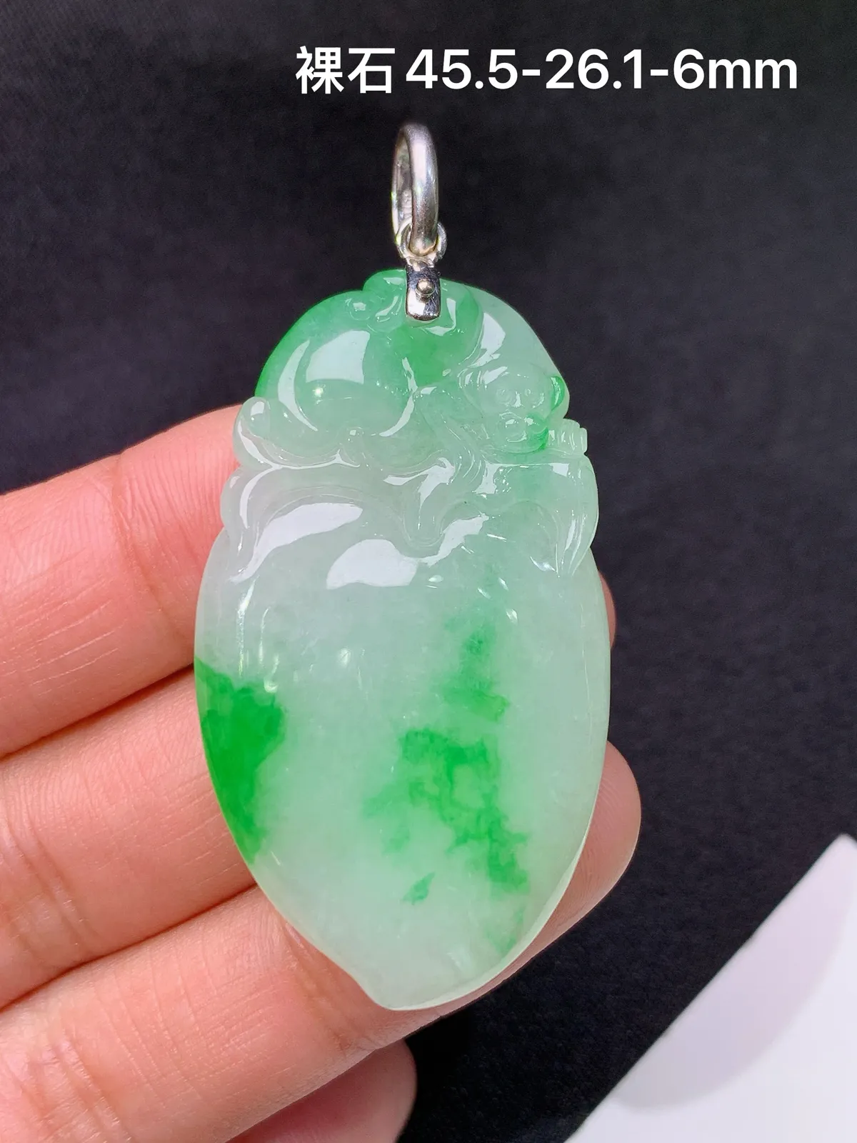 飘绿灵猴献瑞吊坠,18k金镶嵌,冰润色阳,玉质细腻,种水足 zha尺寸45.5*26.1*6