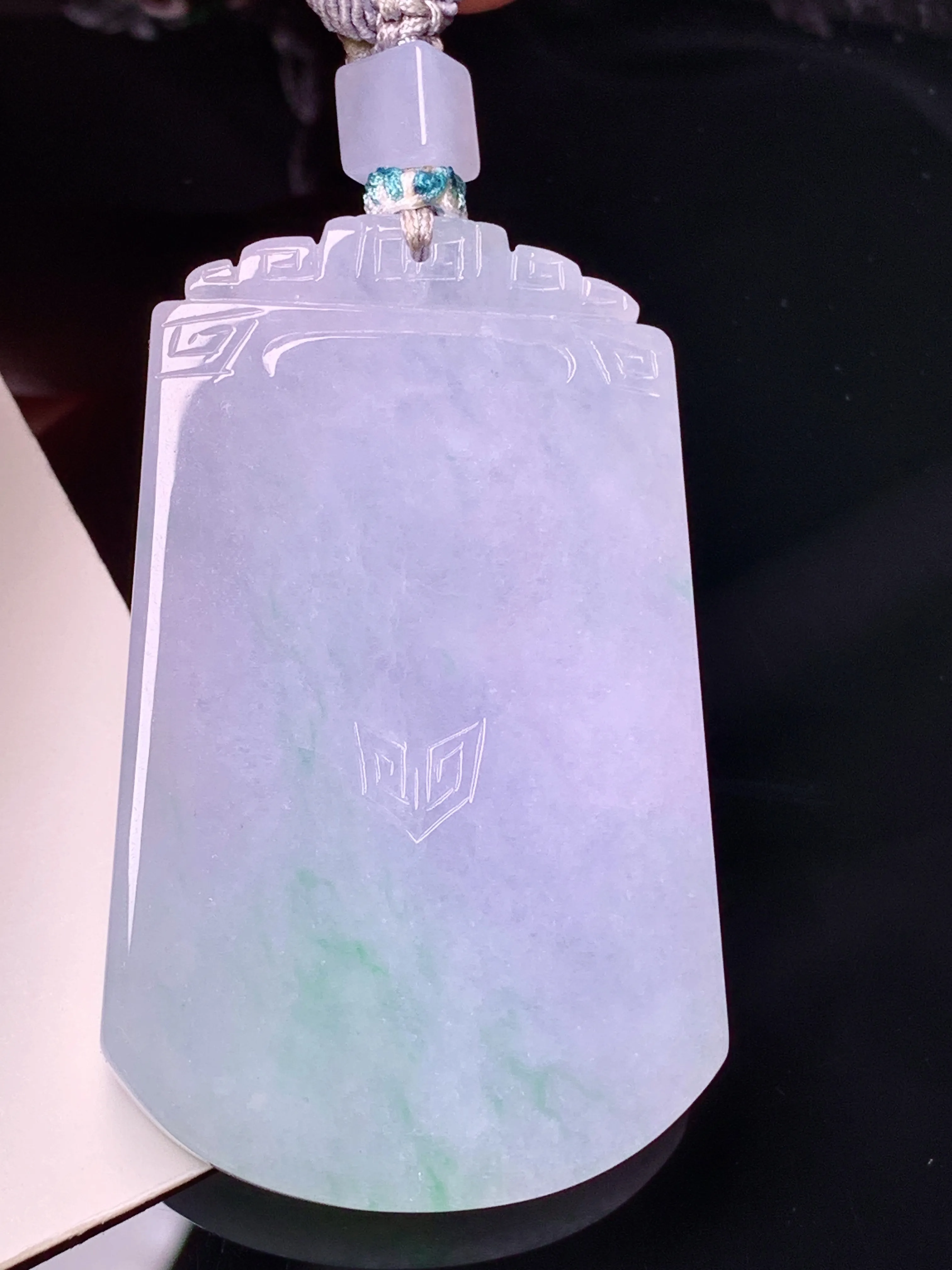 飘绿无事牌吊坠 玉质细腻 色泽艳丽清新 整体尺寸55.6*33.7*6.7
