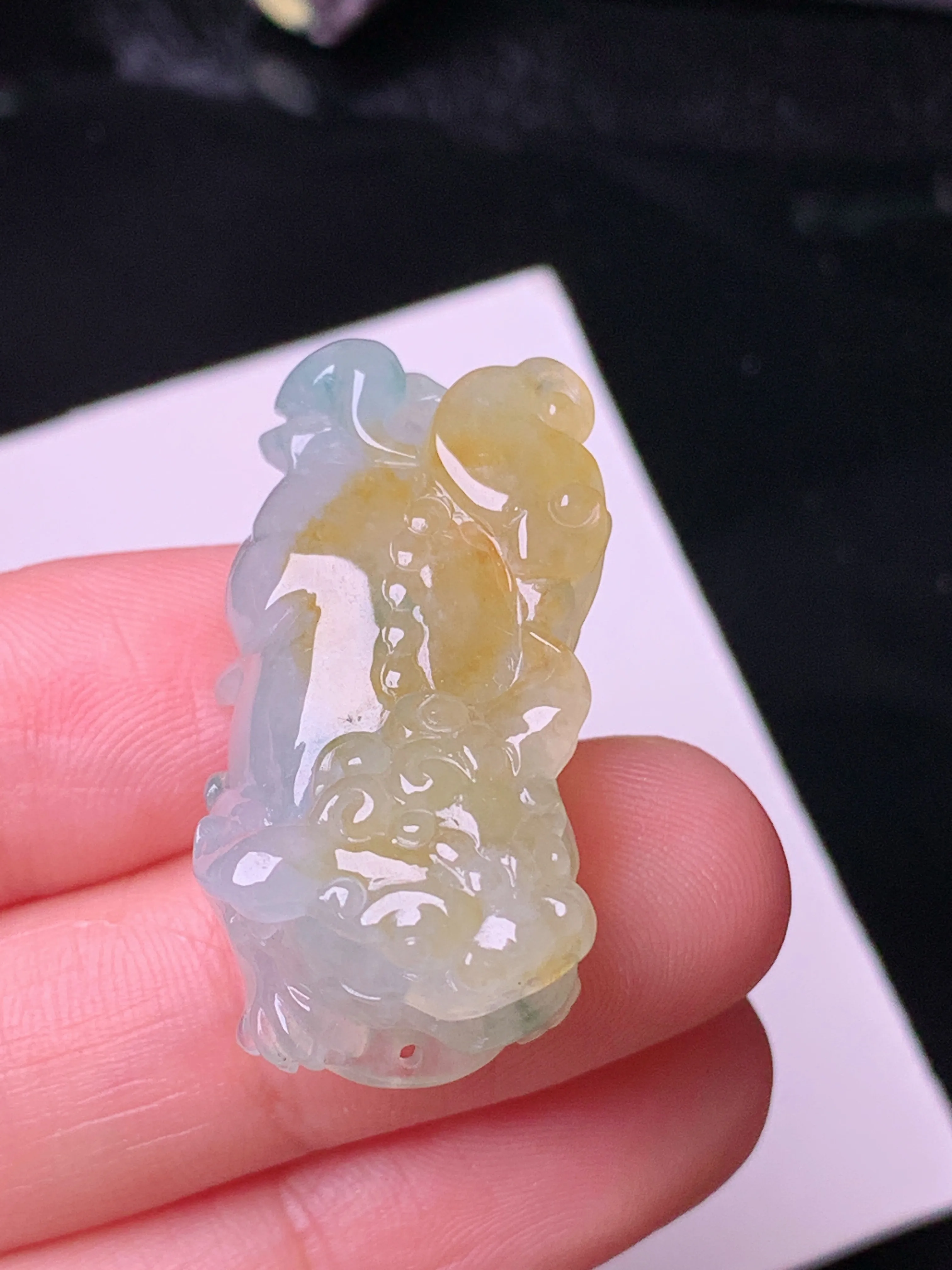 飘黄翡貔貅吊坠 玉质细腻 色泽艳丽清新 整体尺寸33*15.7*11.2