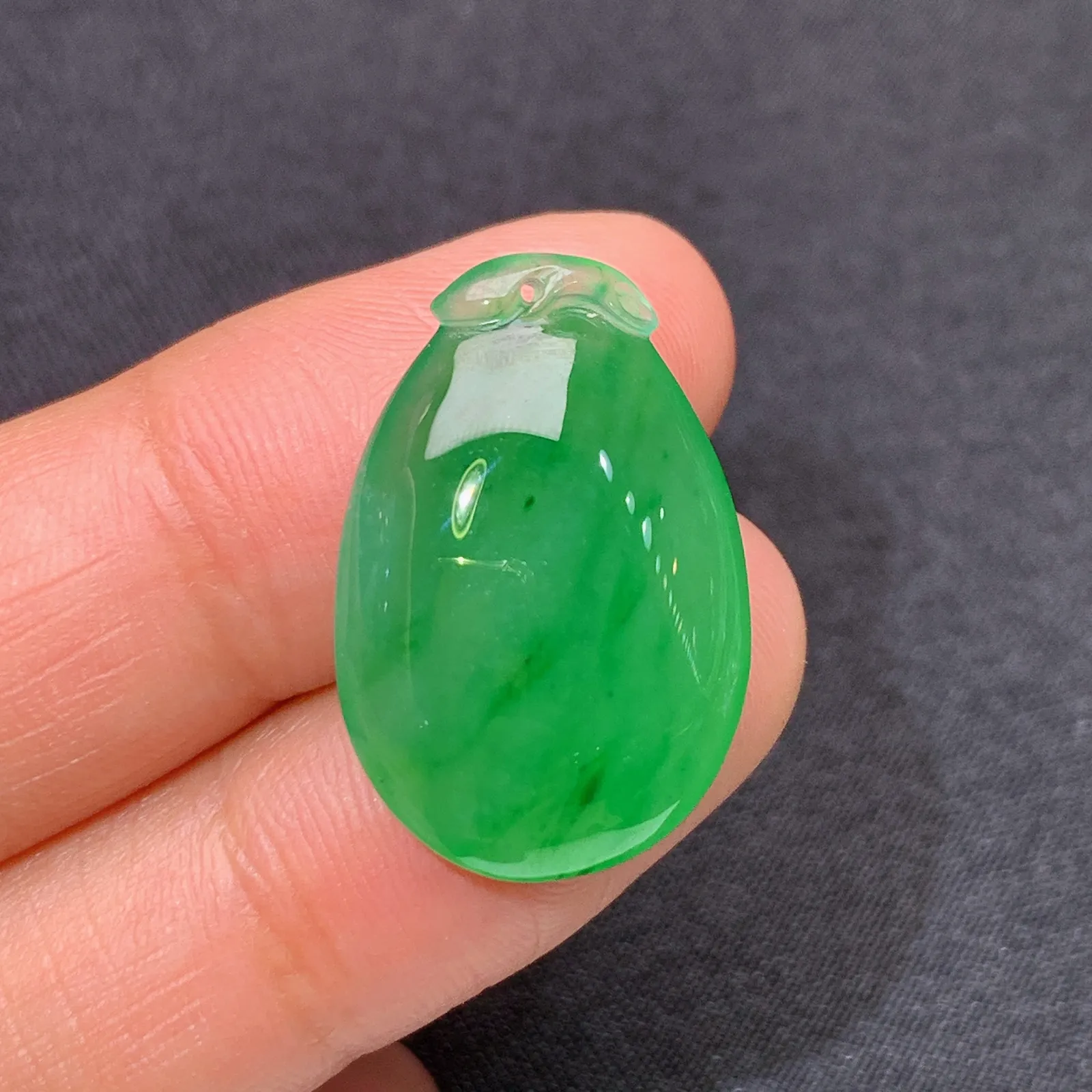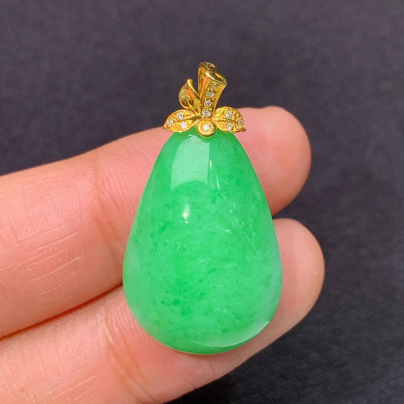翠绿福瓜吊坠,18k金镶嵌,冰润色阳,玉质细腻,种水足 尺寸29.1*15.7*7.8
