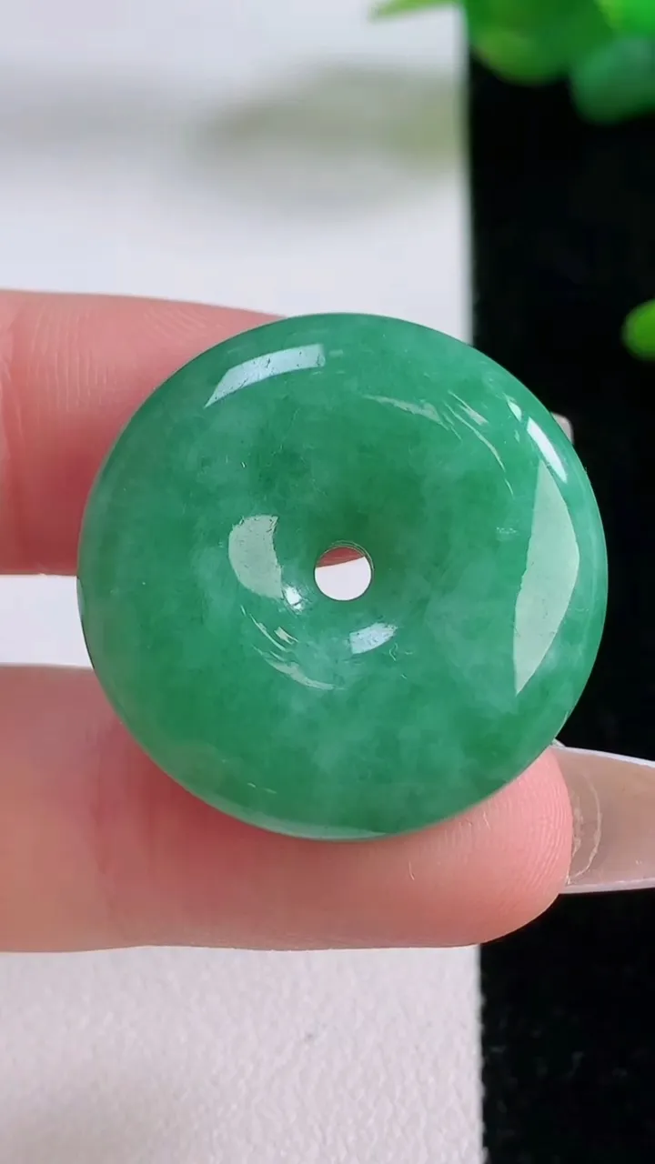 天然A货翡翠平安扣吊坠,尺寸26.6-6.5,重量:10.19g 12月5日
