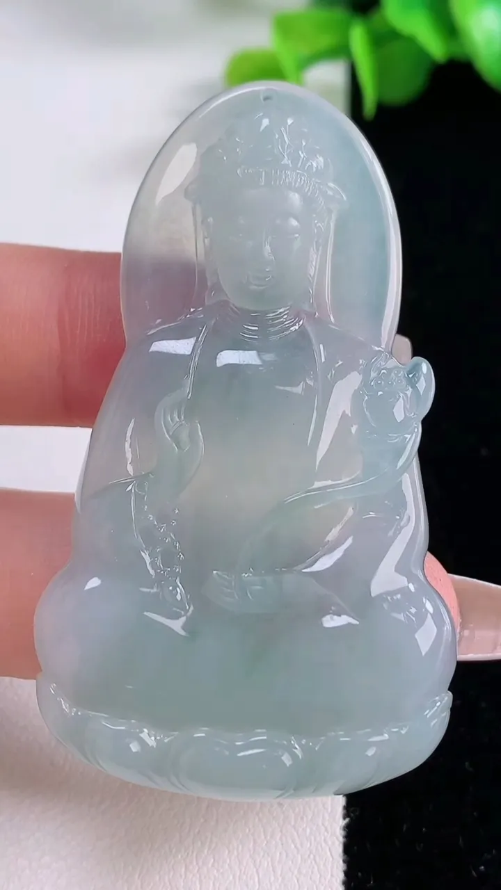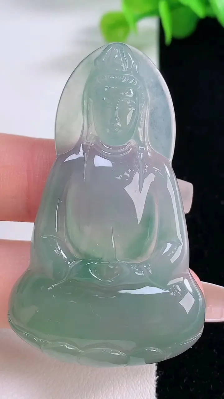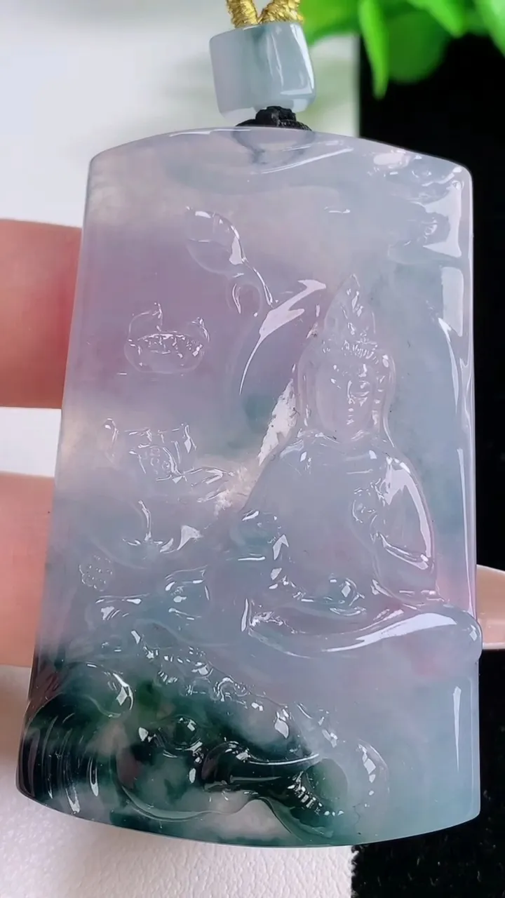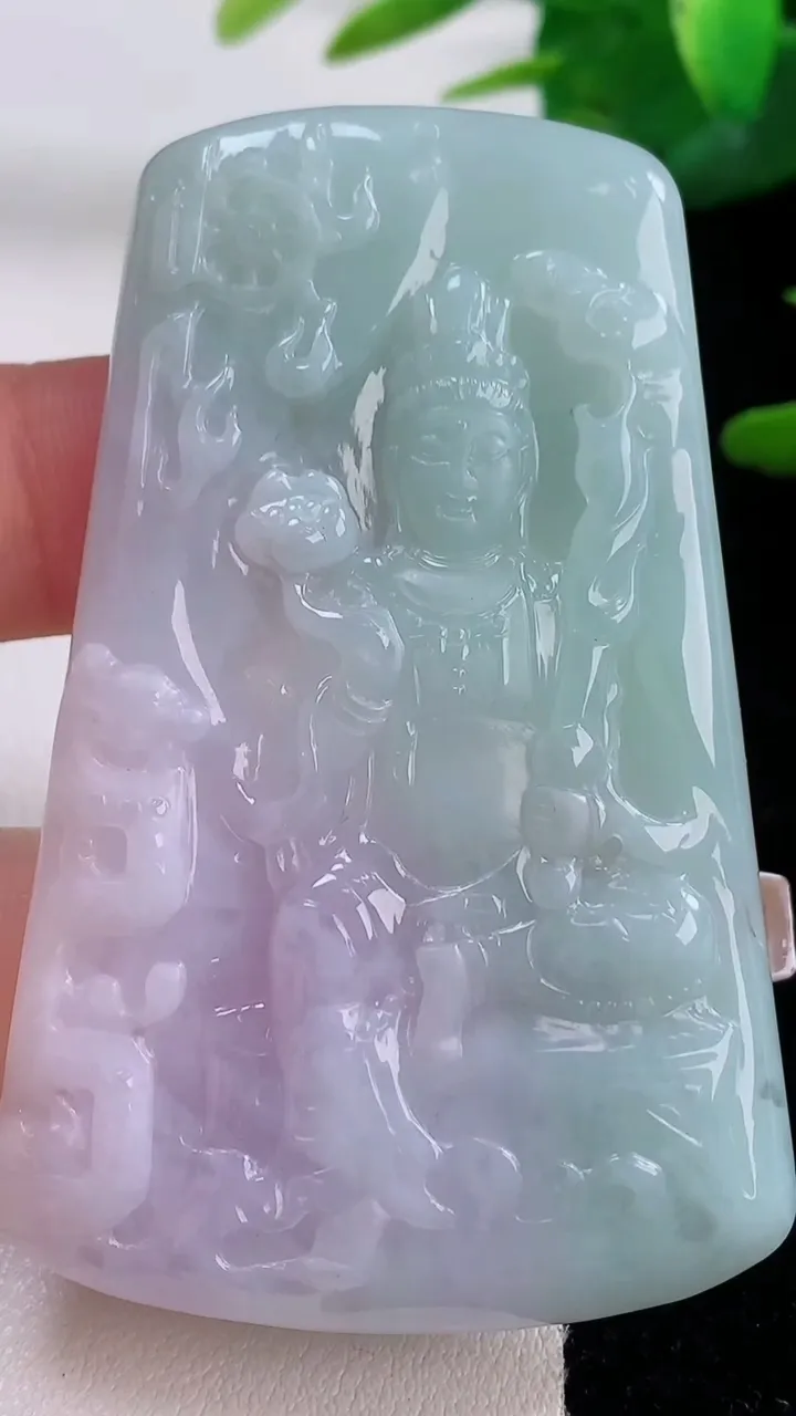 天然A货翡翠春带彩紫罗兰虚空藏菩萨吊坠,尺寸65-40.8-5.7,重量:33.53g 12月5日