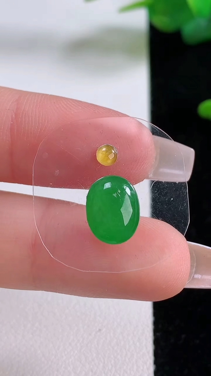天然A货翡翠蛋面镶嵌件一对,尺寸10-7.8-3.2,重量:0.65g 12月5日