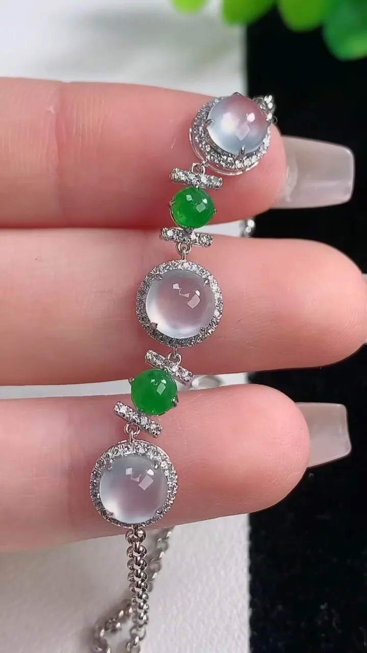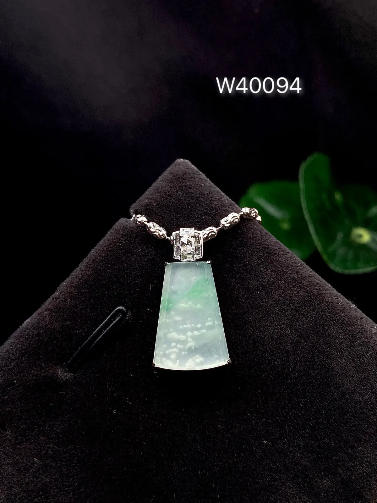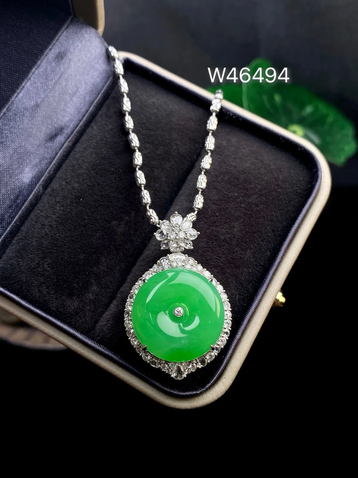 冰透满绿翡翠925银镶嵌吊坠,自然光实拍,翠色灵动,颜色漂亮,种老水足,品相佳,佩戴佳品!#97.7