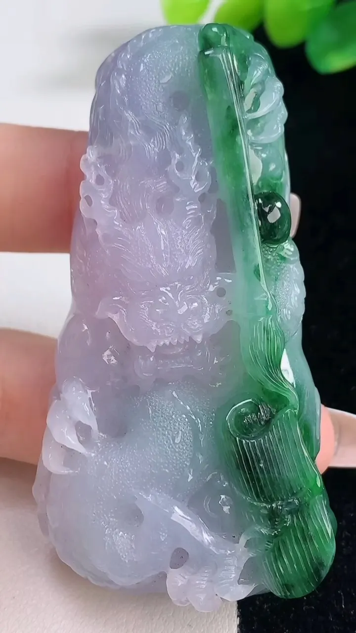 自然光实拍,冰紫罗兰飘花翡翠路路通吊坠,寓意好运连连,路路畅通,经典款式,财运滚滚,路路通,佩戴效果