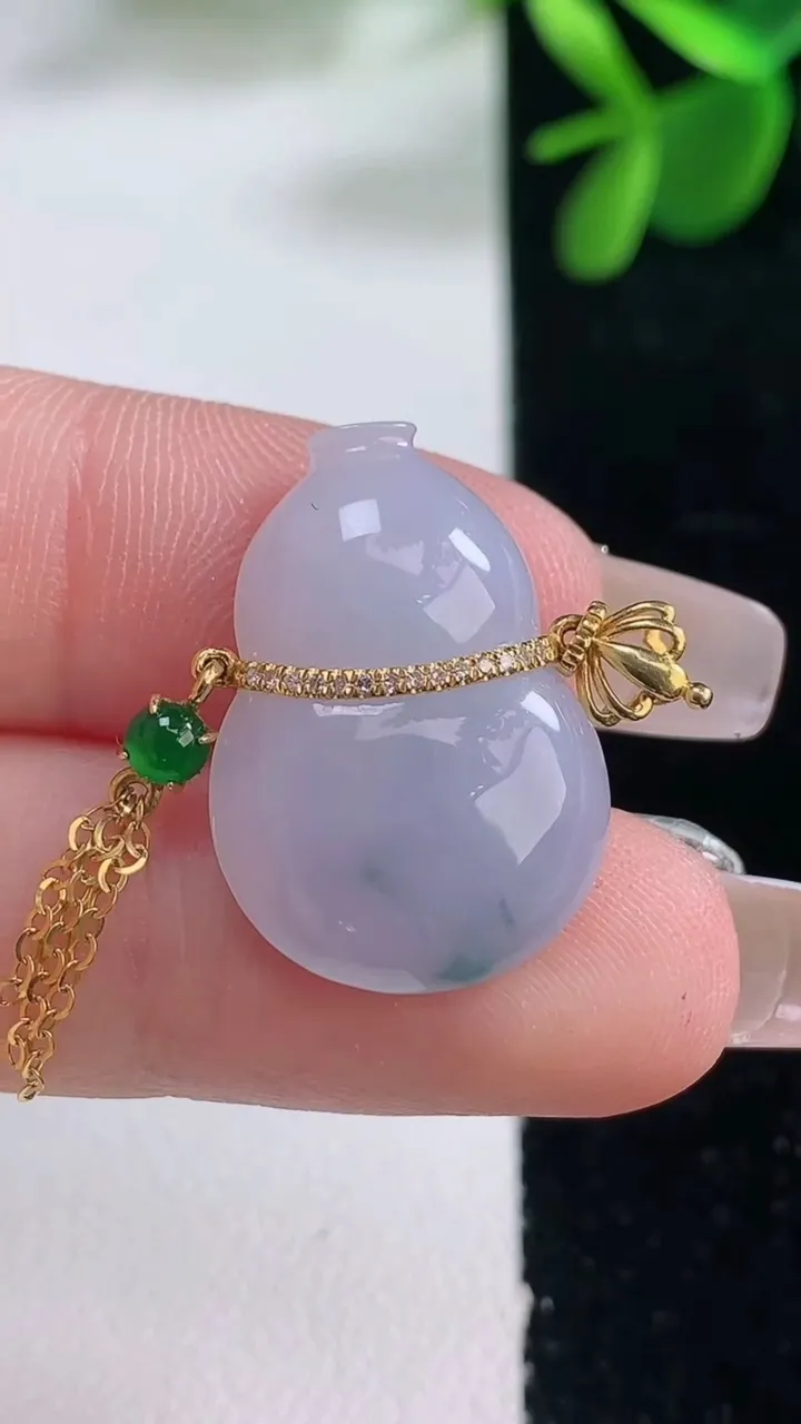 天然A货翡翠18K金紫罗兰葫芦吊坠,尺寸23-16-4.5,重量:3.80g 12月26日